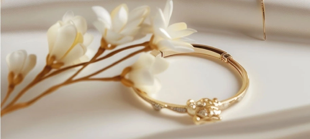 Gold Renkli Çiçek Detaylı Vintage Esintili Küpe