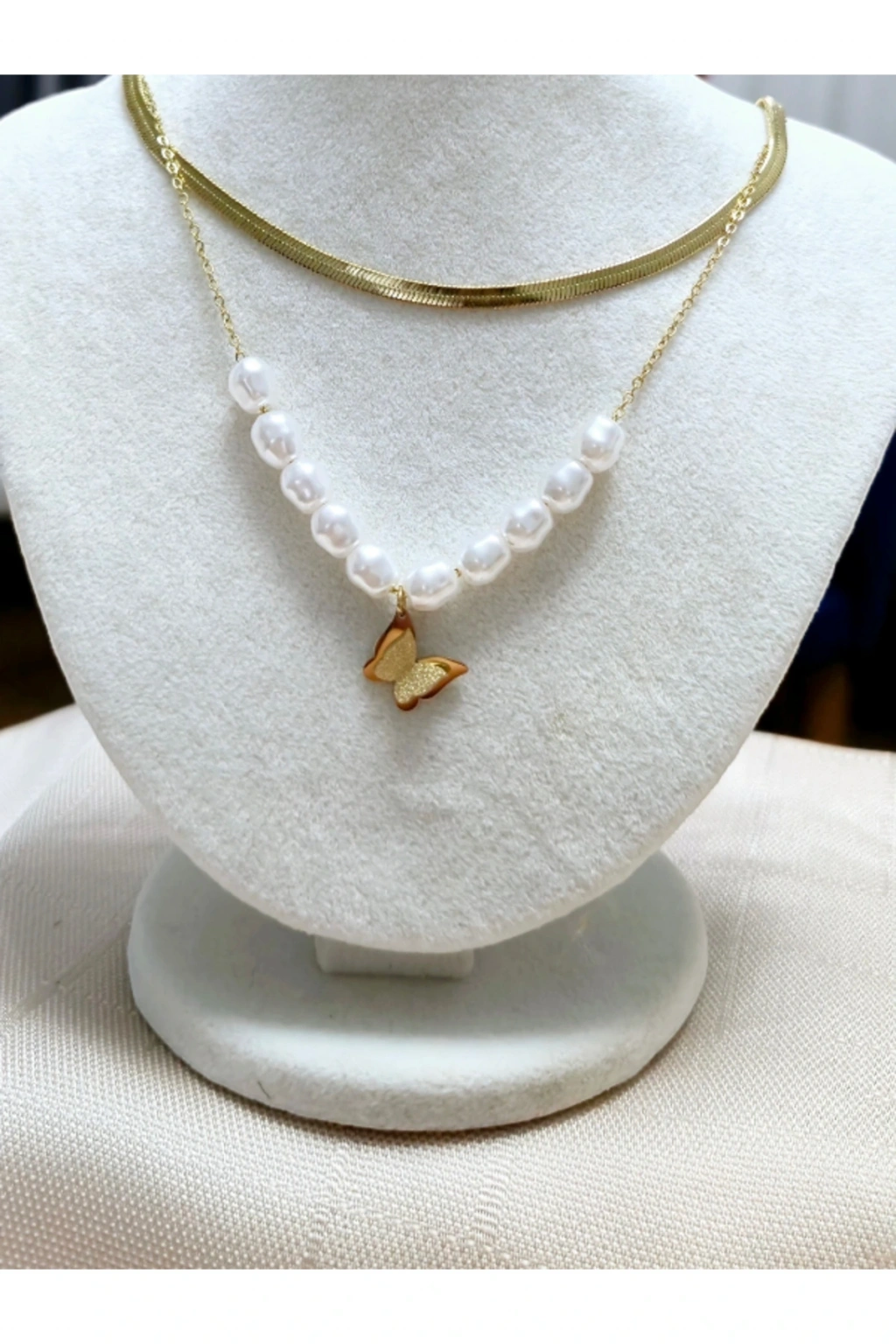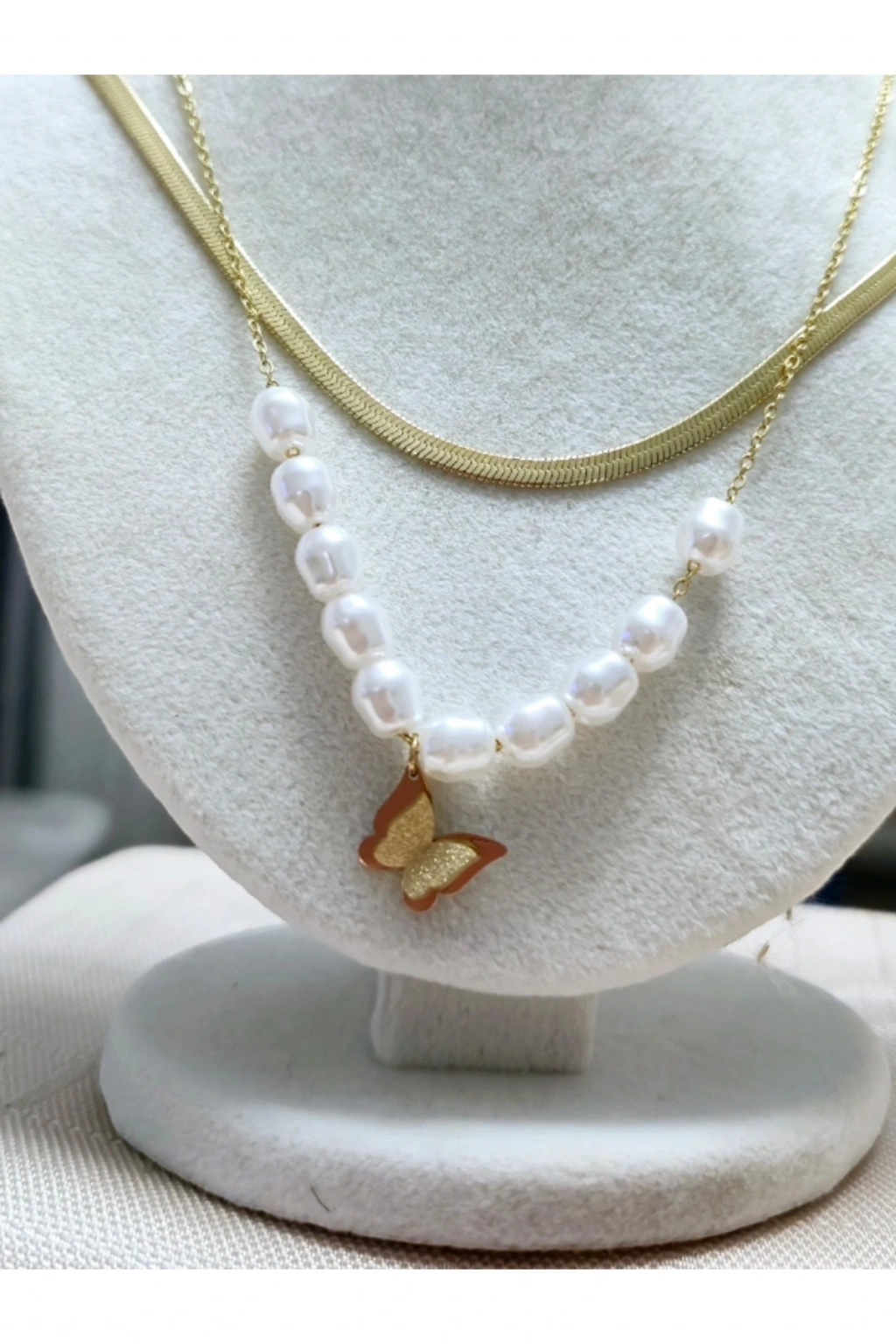 2'li Çelik Altın Renk İtalyan Zincir Kelebek Model Boncuklu Kolye Zarif ve Şık Tasarım Şıklığı ve zarafeti bir araya getiren 2'li Çelik Altın Renk İtalyan Zincir Kelebek Model Boncuklu Kolye , minimalist detaylar ve lüks görünümüyle stilinize bir dokunuş katıyor.; İtalyan zincirinin ince işçiliği ve kelebek figürünün zarafeti , modern ve romantik tasarımıyla öne çıkıyor.; Paslanmaz çelikten üretilmiş ve özel altın kaplama ile güçlendirilmiş olan bu kolye, kararma yapmaz ve uzun ömürlü kullanım sunar .; İki katlı tasarım , tek bir aksesuarla çok daha şık ve bunların bir görünümünün elde edilmesini sağlar.; Zarif boncuk parçaları , kolyeye hareket katarak modern ve göz alıcı bir durma sergiler.; Neden 2'li Çelik Altın Renk İtalyan Zincir Kelebek Model Boncuklu Kolye? ? İtalyan Zincir Kalitesi: Özel işçiliğiyle dikkat çeken, parlak ve dayanıklı bir zincir tasarımı sunar.; ? Altın Kaplama Paslanmaz Çelik: Kararma ve solma yapmayan, uzun ömürlü ve dayanıklı bir şekilde üretilmiştir.; ? Zarif Kelebek Figürü: Kelebek, özgürlük ve yeniden doğuş simgeleri, anlamlı bir aksesuar seçeneğidir.; ? Boncuk Detayları: Şıklığınızı modern ve zarif bir dokunuşla sunar.; ?İki Katmanlı Tasarım: Tek bir kolyeyle katlanabilir ve stil sahibi bir görünüm elde edebilirsiniz.; ? Unisex Kullanım: Kadınlar ve genç kızlar için modern, romantik ve zamansız bir tasarımdır.; ? Hediye İçin Mükemmel Seçenek: Sevdiklerinize şık ve anlam dolu bir hediye sunmak için harika bir alternatiftir.; Tarzınıza Zarafet ve Işıltı Katın! İtalyan tasarımının zarafetini, kelebek figürünün uzunluğunu ve boncuk detaylarının modern şıklığını bir araya getiren bu özel kolye , günlük kombinlerinizden özel davetlere kadar her anınıza dağılacak .; ✨ Şimdi sipariş verin, stilinizi ortaya koyuyor bu benzersiz tasarım! ✨