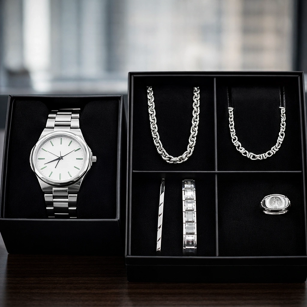 Şıklığı ve gücü bir arada yansıtan Advent Calendar Erkek Takı 6’lı Set, modern erkeğin stilini tamamlamak için özel olarak hazırlanmıştır. Gümüş renk tonlarının zamansız duruşu, günlük kullanımdan özel davetlere kadar her kombinle mükemmel uyum sağlar.