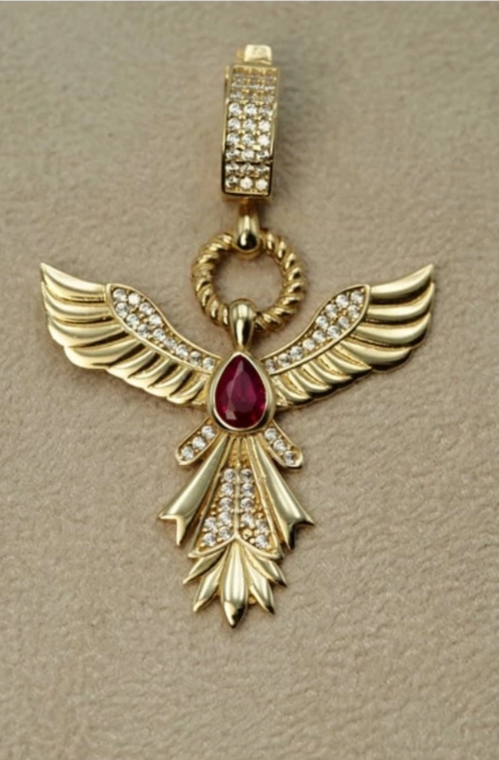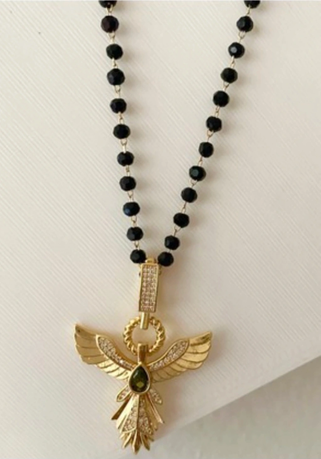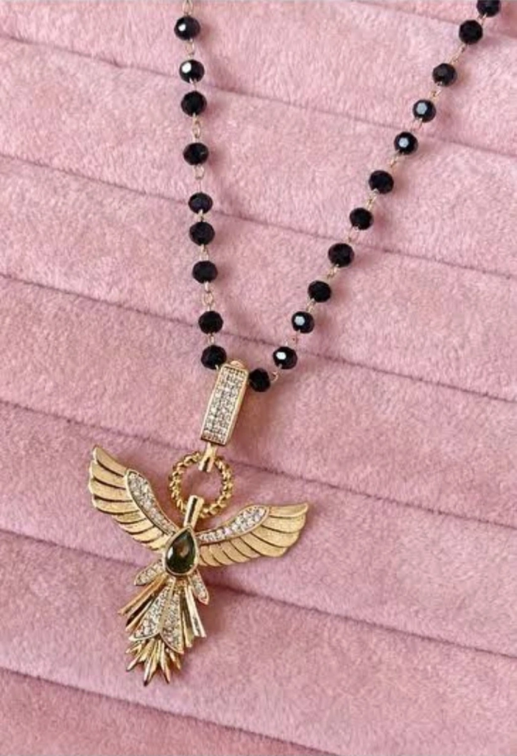 ÇAĞLA KOLEYESİ – VIP ANKA KUŞU MODEL GOLD & KIRMIZI TAŞLI SİYAH TAŞ ZİNCİRLİ KOLYE