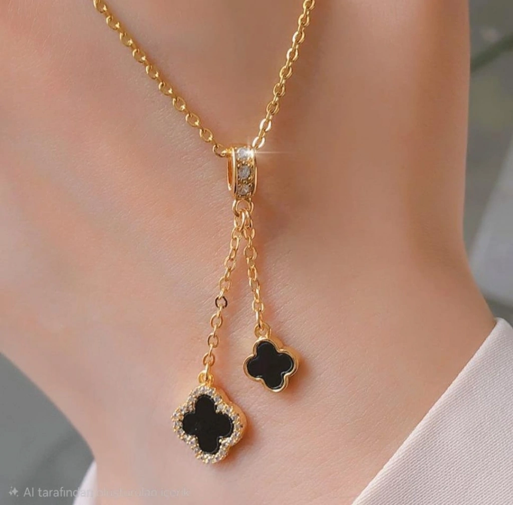 Kendiniz için zarif bir tamamlayıcı ya da sevdikleriniz için anlamlı ve şık bir hediye arıyorsanız, çelik gold renkli siyah yonca charmlı kolye mükemmel bir seçimdir. ✨