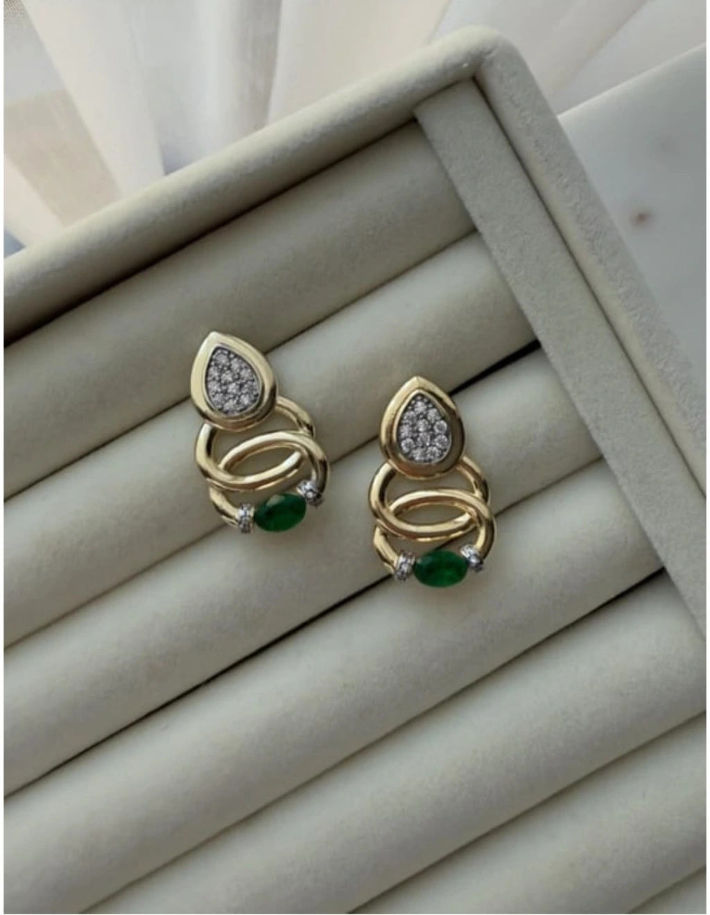 Bu küpe, güçlü ve sofistike duruşu temsil eden kadınlar için tasarlandı. Gold rengin sıcaklığı, zümrüt yeşil taşın derinliğiyle birleşerek özel bir kontrast yaratır. Her kombinde zarafeti ön plana çıkarır; iş toplantılarından akşam davetlerine kadar her ortamda “VIP ve Luxury” bir imaj sunar.