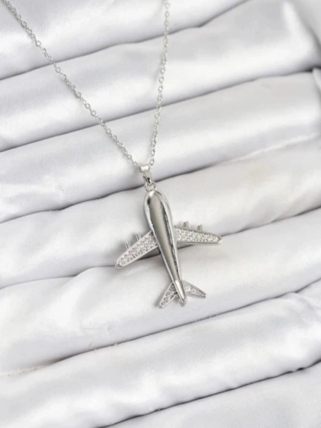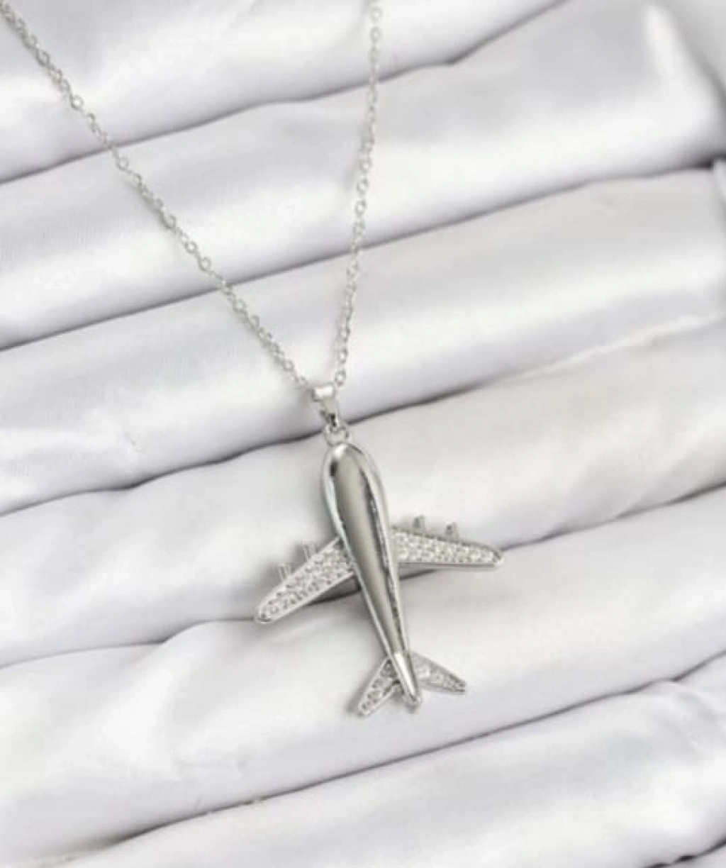 gümüş renk uçak kolye, çelik uçak kolye, paslanmaz çelik kolye, seyahat temalı kolye, uçak figürlü kolye, bayan kolye, anlamlı kolye, şık kolye modeli, hediye kolye