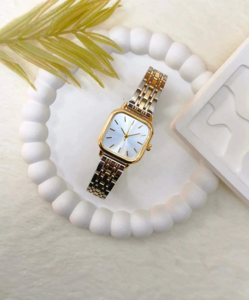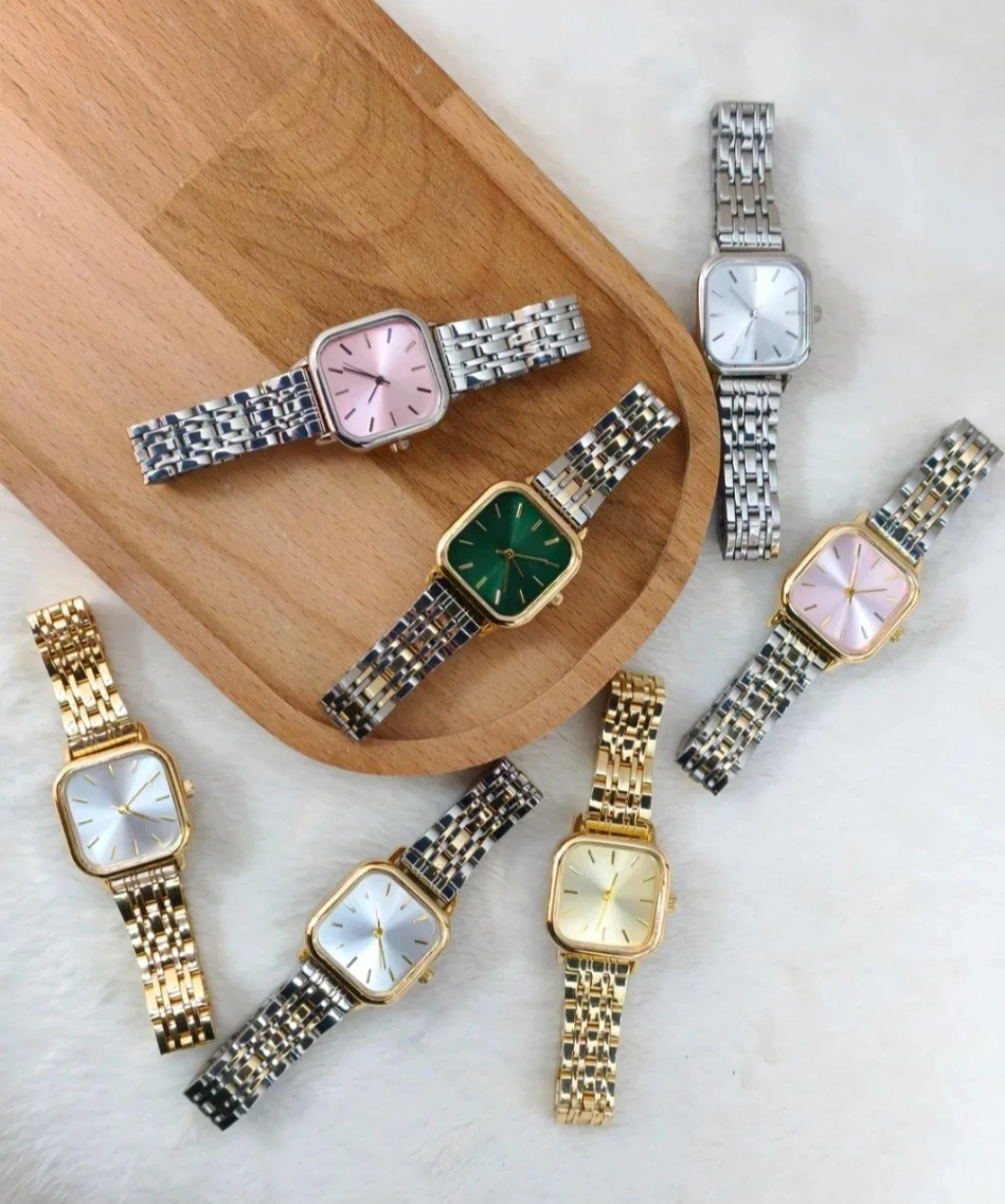 Kare kasa formu ve ince indeks detayları saatin modern çizgilerini ön plana çıkarırken, çift renkli metal kordon tasarımı farklı takılar ve kombinlerle kolayca uyum sağlar. Hem klasik hem de modern stil seven kadınlar için ideal bir aksesuardır.