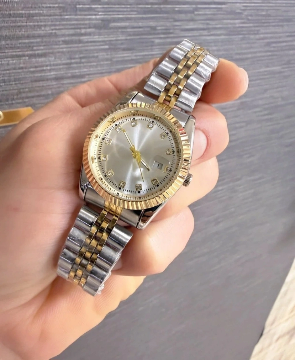 Çift Renkli Taş Detaylı Lüks Kadın Saat – Gold & Silver Metal Kordon