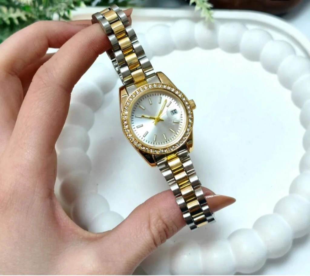 Gold ve gümüş tonlarının uyumuyla tasarlanan çift renkli metal kordon, saate hem modern hem de zamansız bir görünüm kazandırır. Minimal indeks detayları ve tarih göstergesi sayesinde hem estetik hem de kullanışlı bir tasarıma sahiptir.