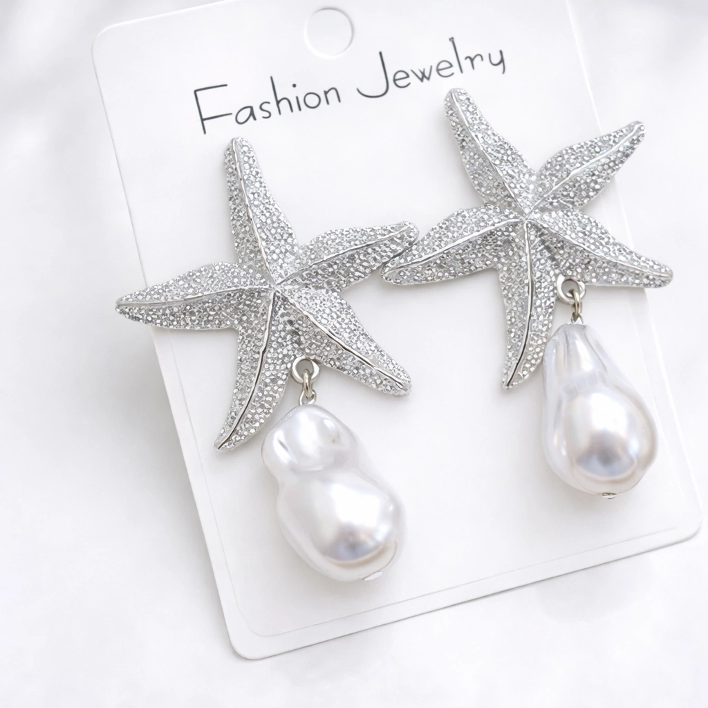 Deniz Yıldızı Figürlü İnci Detaylı Gümüş Renk Marka Model Küpe