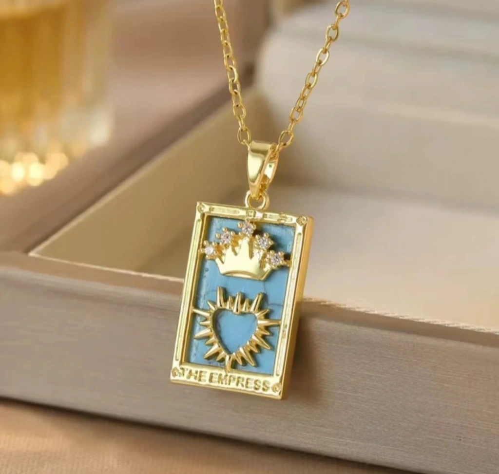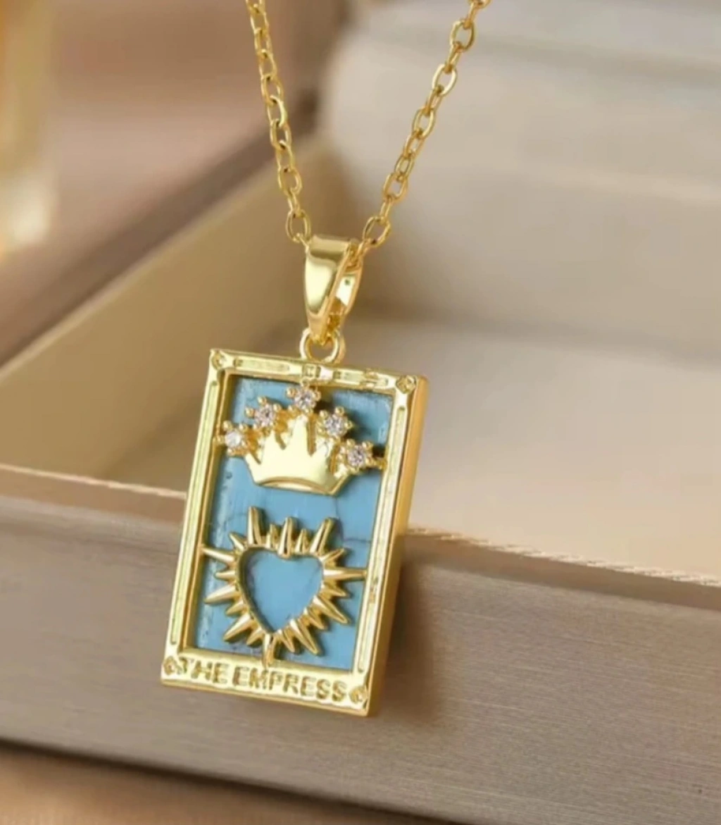 Zarafet, güç ve feminen liderlik enerjisinin simgesi olan Empress (Kraliçe) Tarot Kolye, gold rengin ışıltısı ile modern stilinizi bir araya getiriyor. Paslanmaz çelik gövdesi sayesinde kararma yapmayan, uzun ömürlü ve antialerjik bir kullanım sunar.