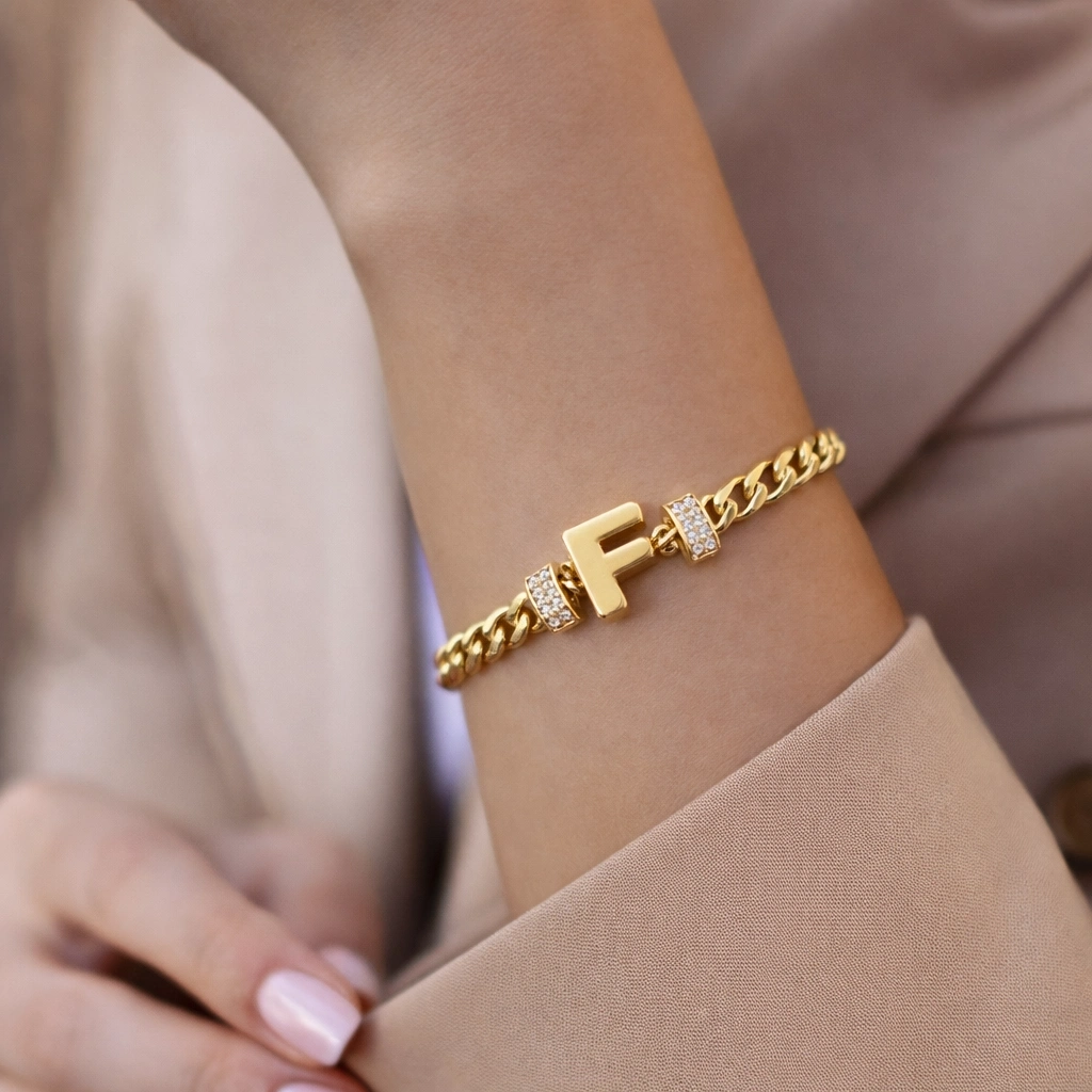 Şıklığın ve zarafetin en özel halini yansıtan F harfli zincir bileklik, modern tasarımı ve göz alıcı detaylarıyla stilinizi tamamlıyor. Günlük kombinlerden özel davetlere kadar her ortamda rahatlıkla kullanabileceğiniz bu bileklik, minimal ve anlamlı takıları sevenler için ideal bir seçimdir.