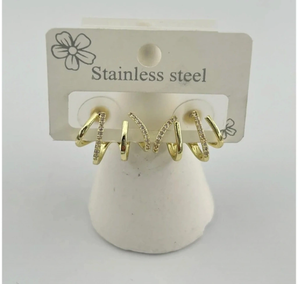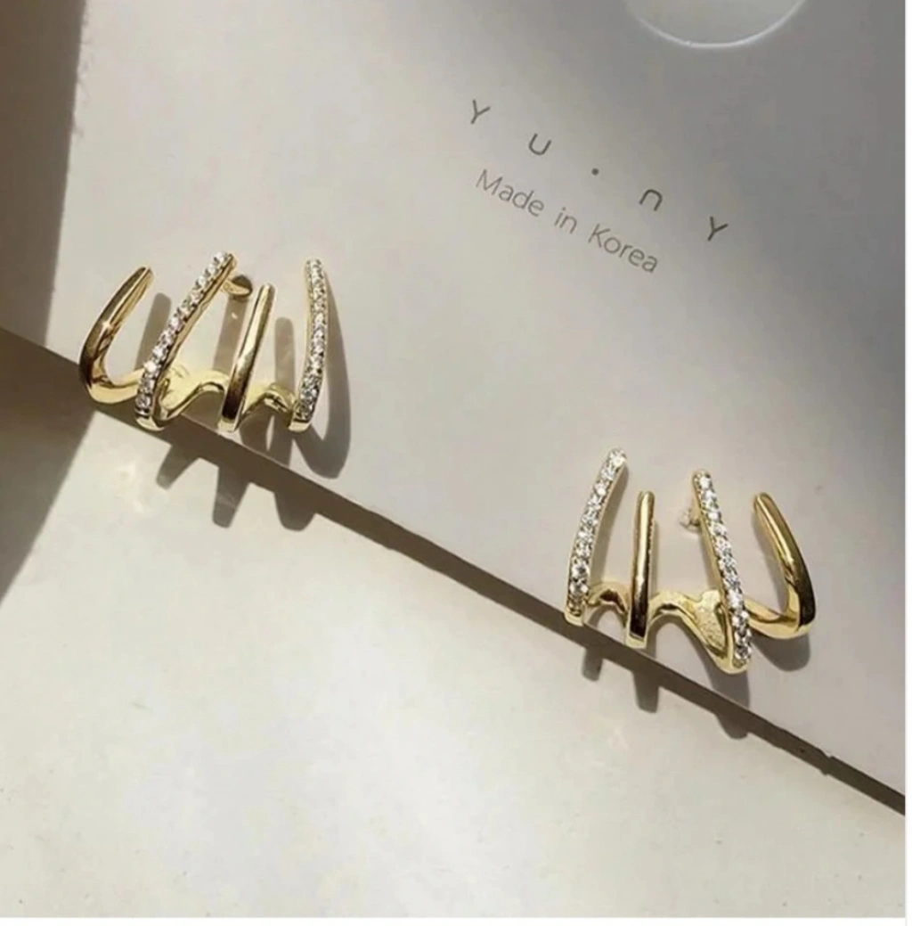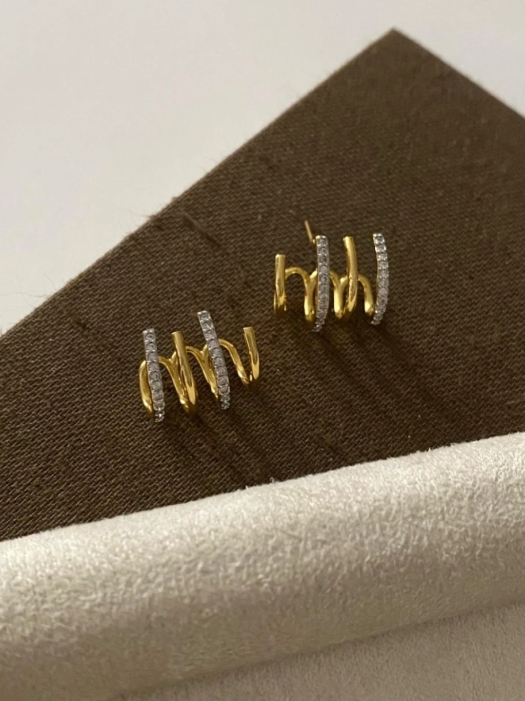 Bu tasarım, güç, zarafet ve özgüveni aynı anda yansıtır. Gold rengin sıcak parıltısı, taşların sofistike ışıltısıyla birleşerek “Luxury & VIP” bir görünüm oluşturur. Modern kadınların güçlü duruşunu vurgulayan bu küpe, hem profesyonel ortamda hem de özel günlerde etkileyici bir stil imzası bırakır.