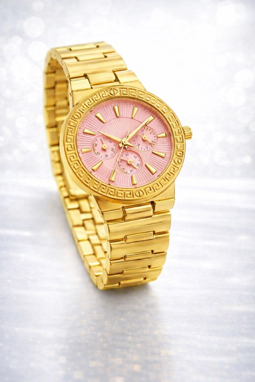 Şıklığı ve zarafeti bir arada sunan gold renkli pembe kadranlı kadın saat, modern tasarımıyla günlük ve özel kombinlerinize kusursuz şekilde uyum sağlar. Parlak gold metal kordonu ve soft pembe kadranı sayesinde hem feminen hem de premium bir görünüm sunar. Dayanıklı paslanmaz çelik kasa yapısı, uzun ömürlü kullanım sağlarken kaliteli işçiliğiyle dikkat çeker.