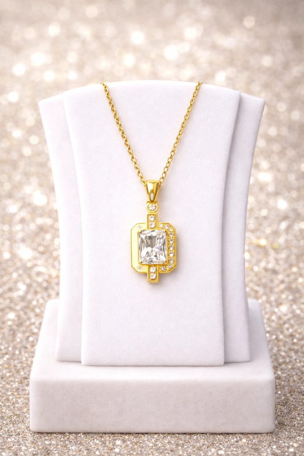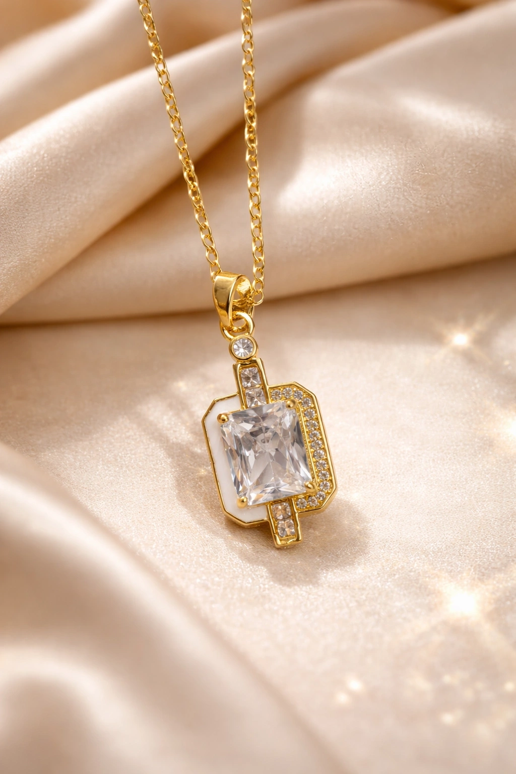 ✨ Gold Renkli Çelik Baget Taş Detaylı Modern Kolye