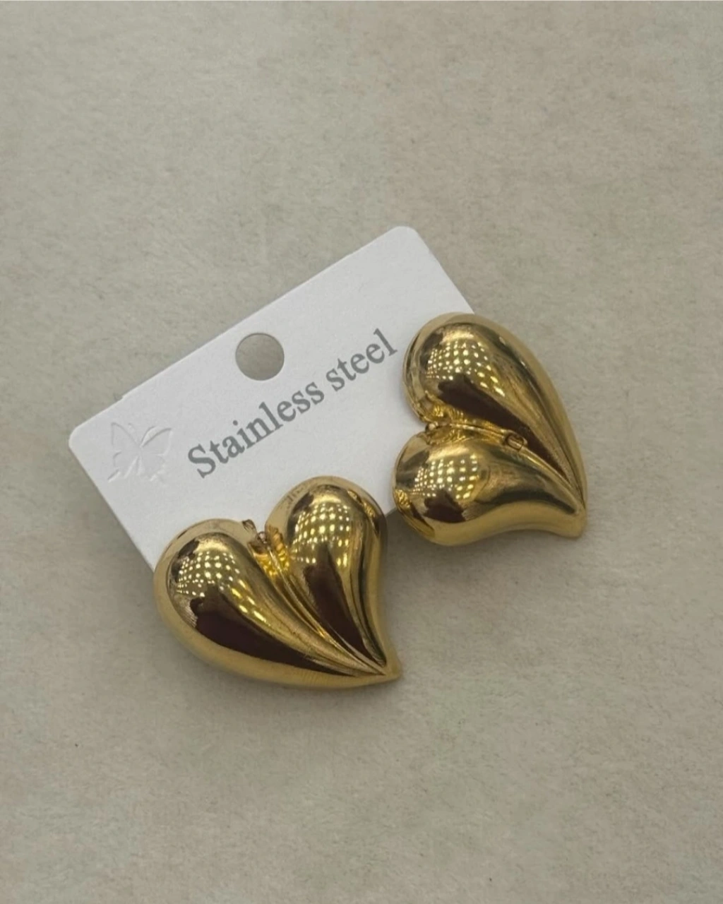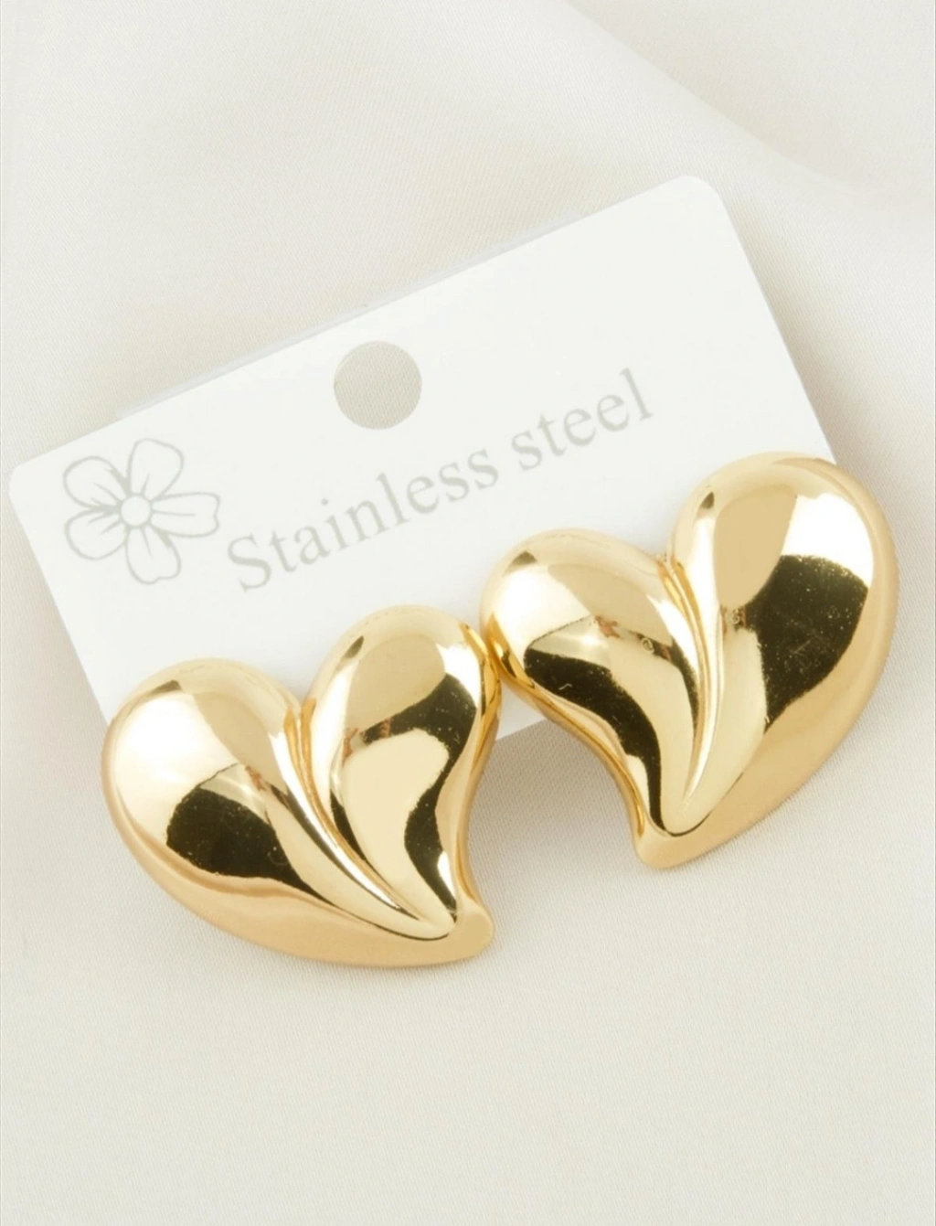 Zamansız kalp formunun modern ve güçlü bir yorumuyla tasarlanan gold renkli çelik kalp küpe, sade şıklığı lüks bir duruşla buluşturur. Yüksek parlaklığa sahip gold yüzeyi sayesinde ışığı kusursuz şekilde yansıtarak dikkat çekici ama abartısız bir görünüm sunar.