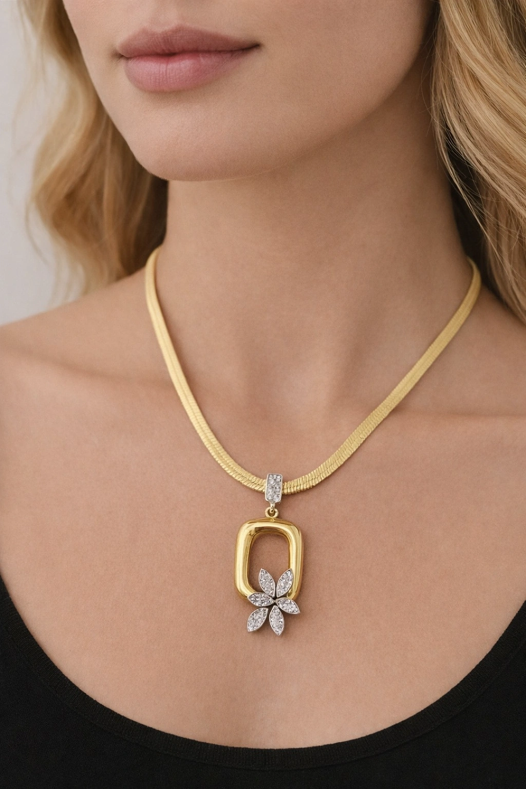 Şıklığı ve zarafeti bir arada sunan Gold Renkli Çelik Kolye, modern tasarımı ve göz alıcı taş detaylı formu ile stilinizi tamamlayan özel bir aksesuardır. Günlük kombinlerden özel davetlere kadar her ortamda rahatlıkla kullanılabilir.
