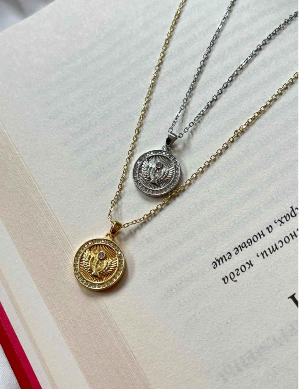 Gold Renkli Çelik Madalyon Kolye – Işıltılı ve Şık Tasarım