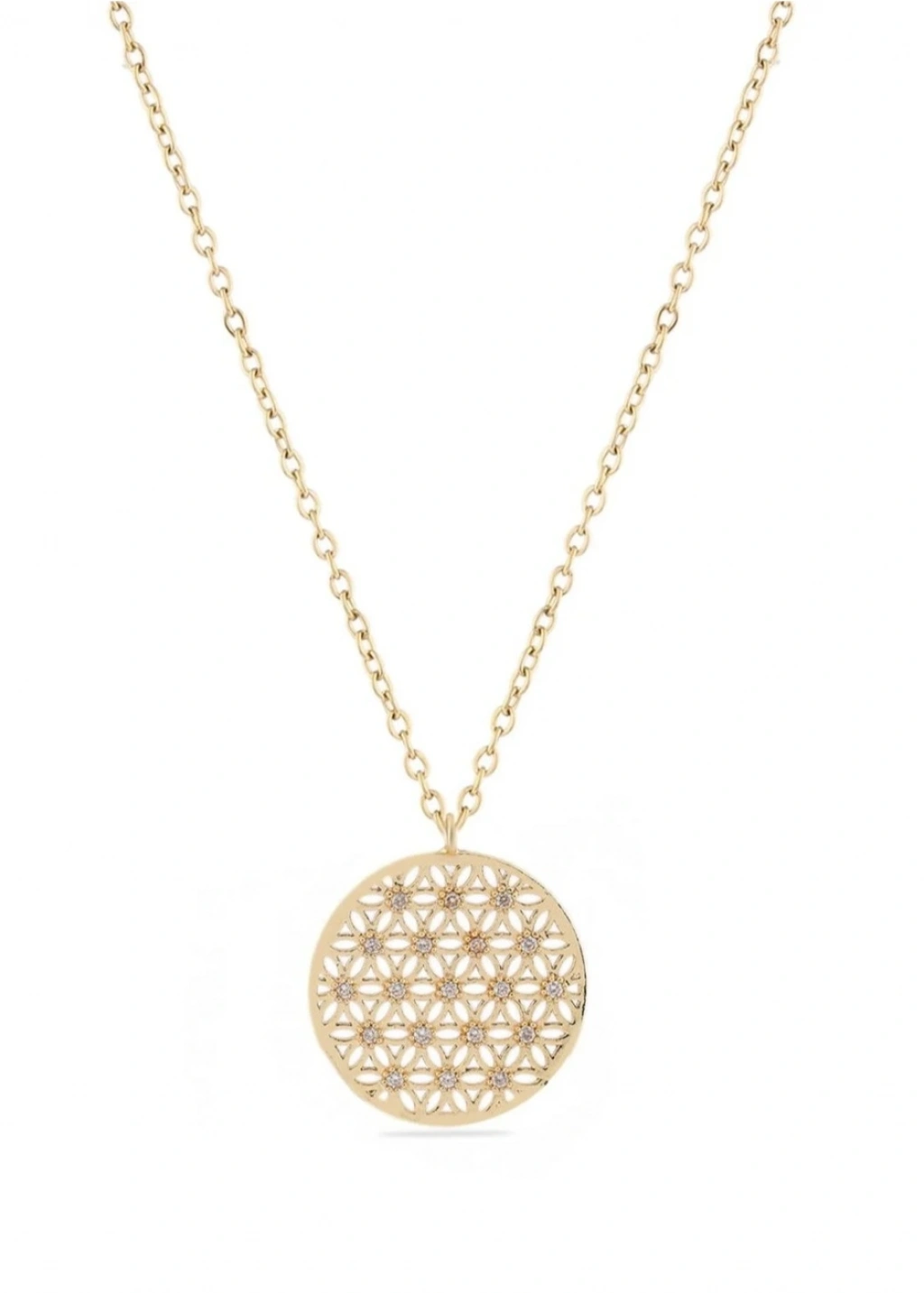 Gold Renkli Çiçek Detaylı Çelik Kolye