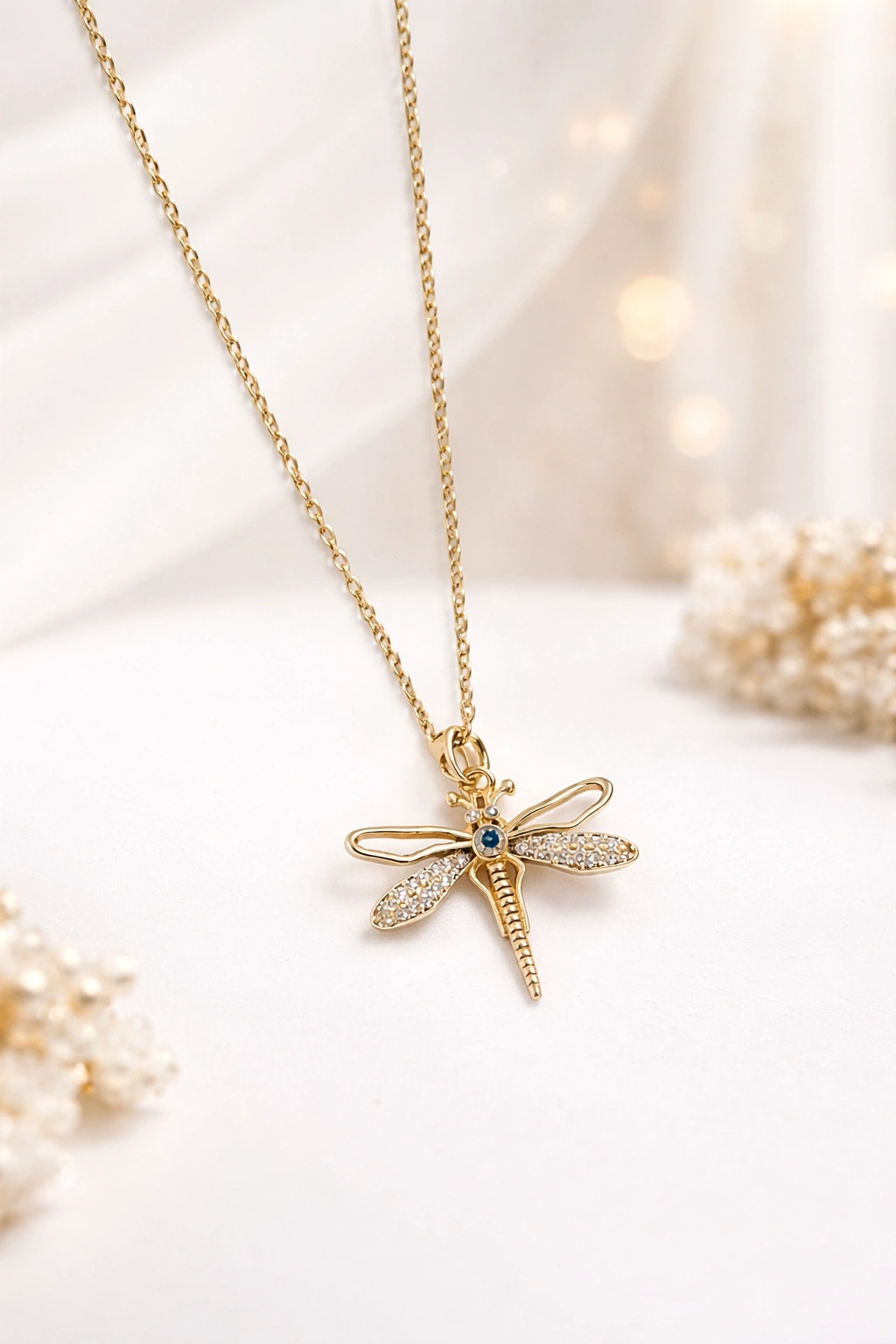 Zarif detayları ve anlam yüklü tasarımıyla öne çıkan Gold Renkli Çelik Yusufçuk Kolye, modern kadının güçlü ve sofistike stilini yansıtan özel bir aksesuardır. İnce işçilikle hazırlanmış yusufçuk figürü; zarafet, özgürlük ve yenilenmenin simgesi olarak kolyeye güçlü bir karakter kazandırır.