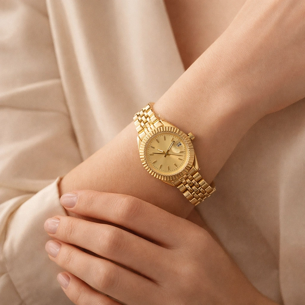 Gold Renkli Minimal Kadın Saat – Şık ve Zarif Günlük Kullanım Kol Saati