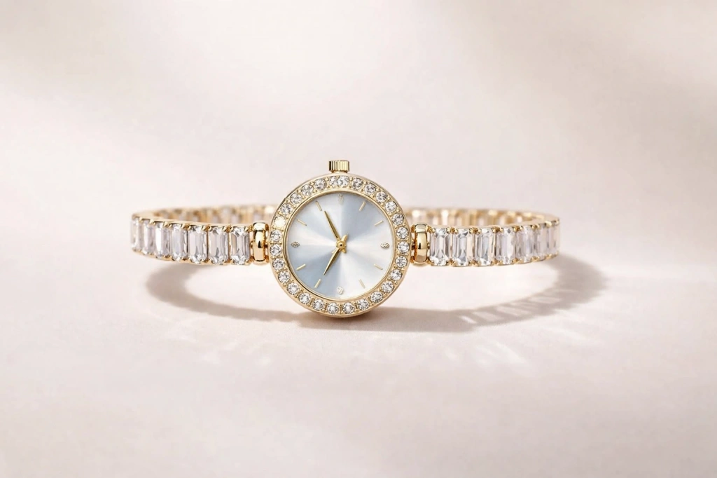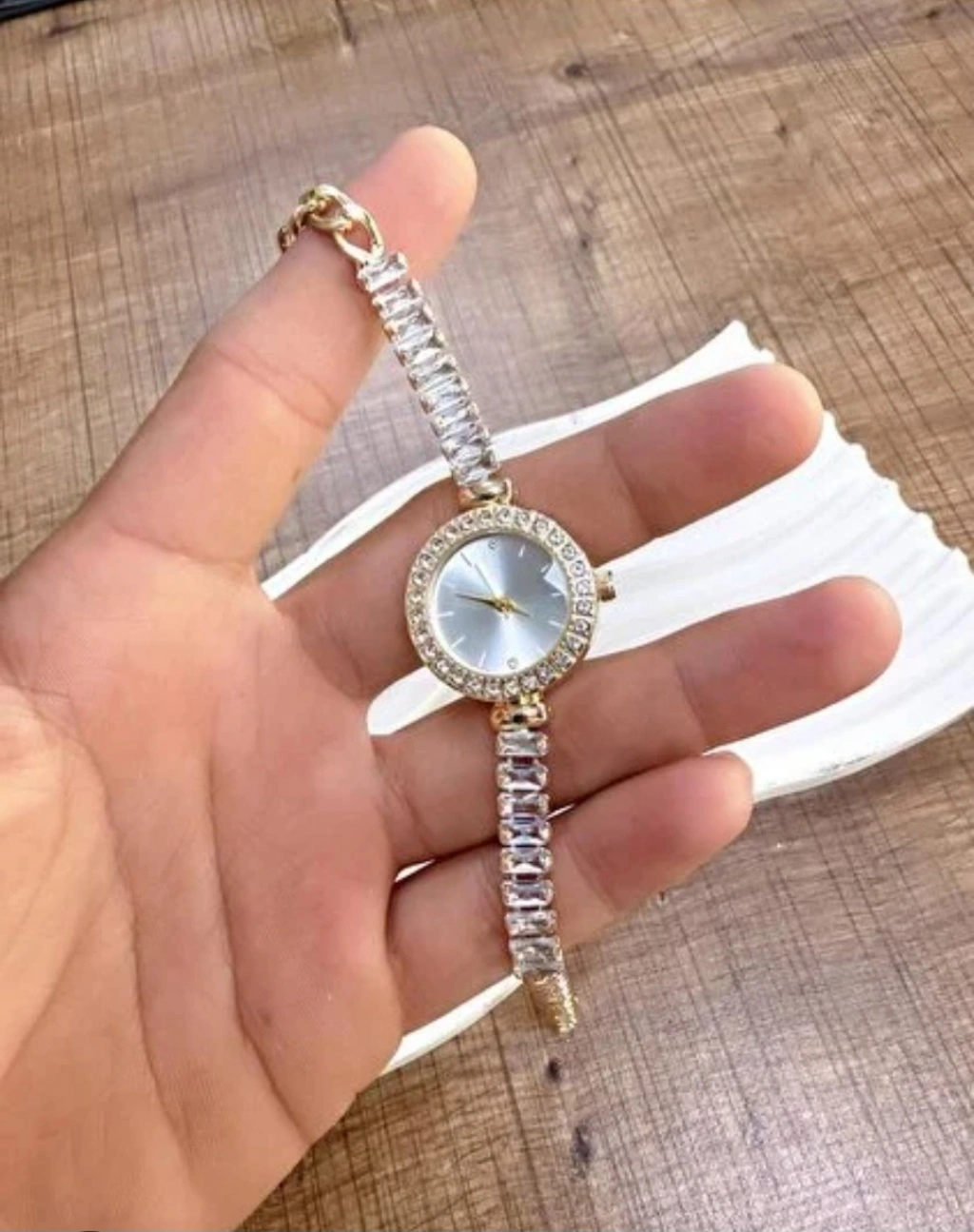 Gold Renkli Taş Detaylı Şık Kadın Saat – Zarif ve Modern Tasarım