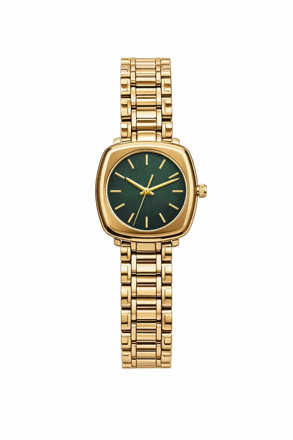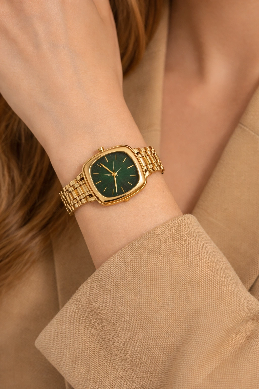 Kaliteli çelik materyalden üretilen bu saat, uzun ömürlü kullanım ve konfor sunar. Yeşil kadranın gold detaylarla buluşması, ürüne lüks ve dikkat çekici bir görünüm kazandırır. Zarif ama güçlü duruşu sayesinde klasik, casual ve şık kombinlerle mükemmel uyum sağlar.