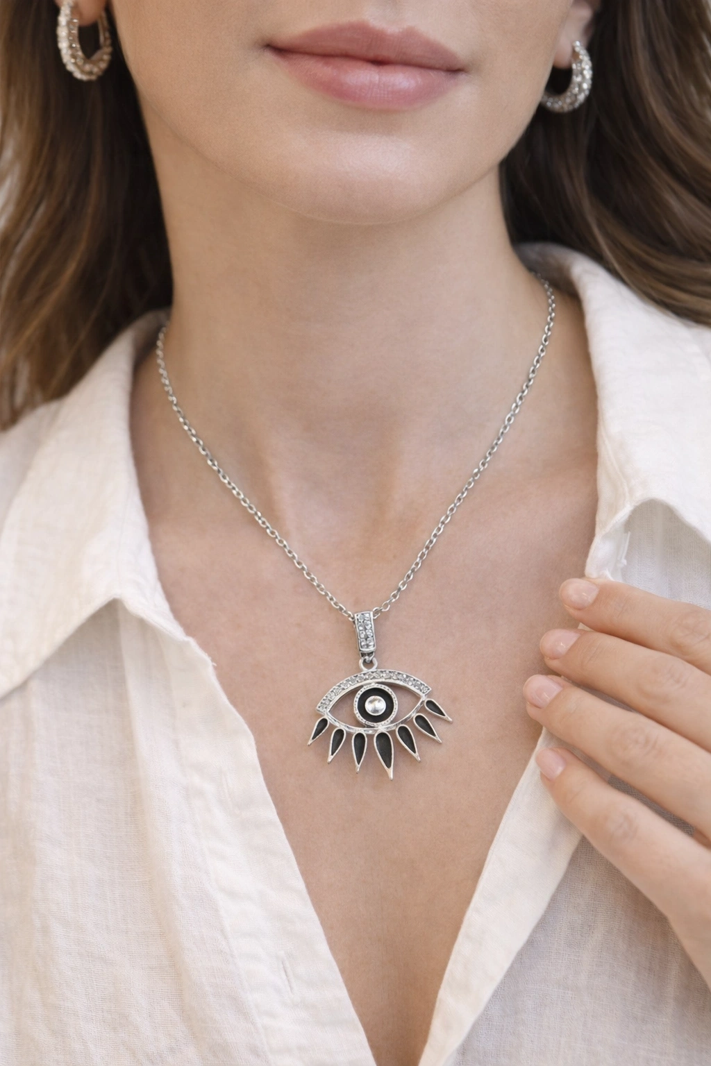 Göz Figürlü Zirkon Taşlı Gümüş Kolye – Şıklık ve Koruyucu Enerji Bir Arada