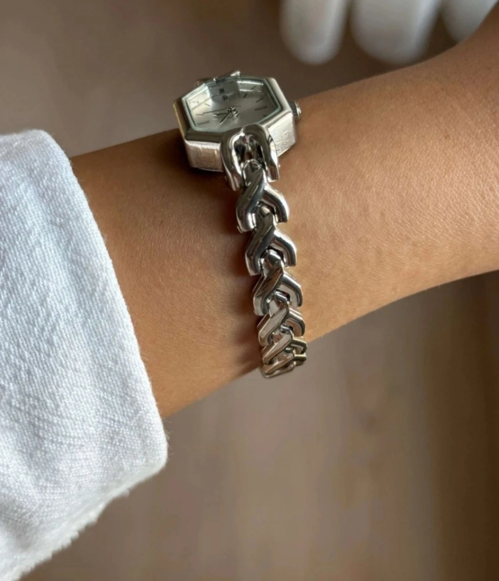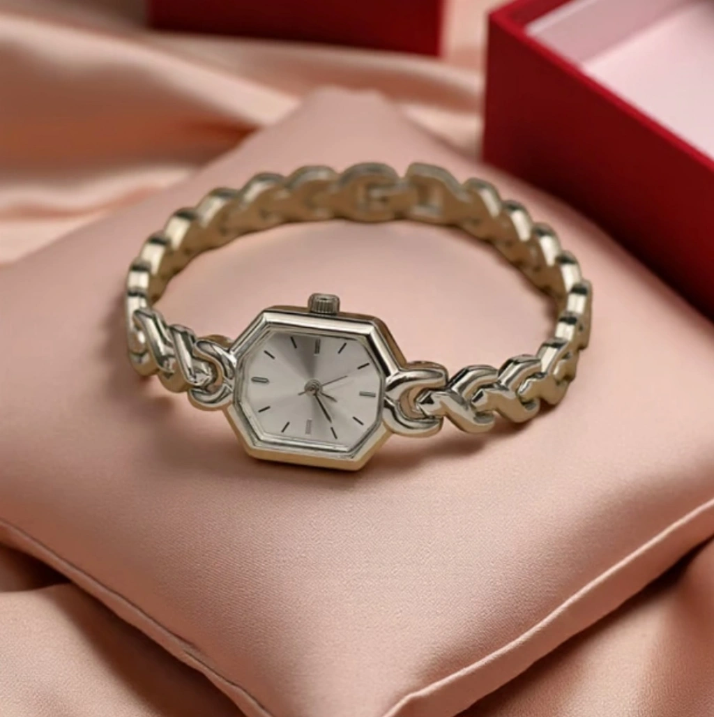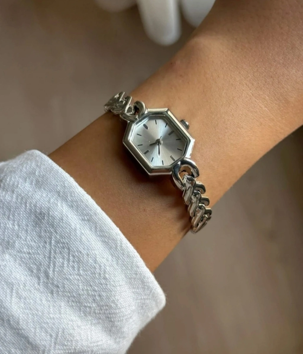Gümüş Renk Minimal Kadın Saat – Metal Bileklik Kordon Zarif Sekizgen Kasa Şık Kadın Kol Saati