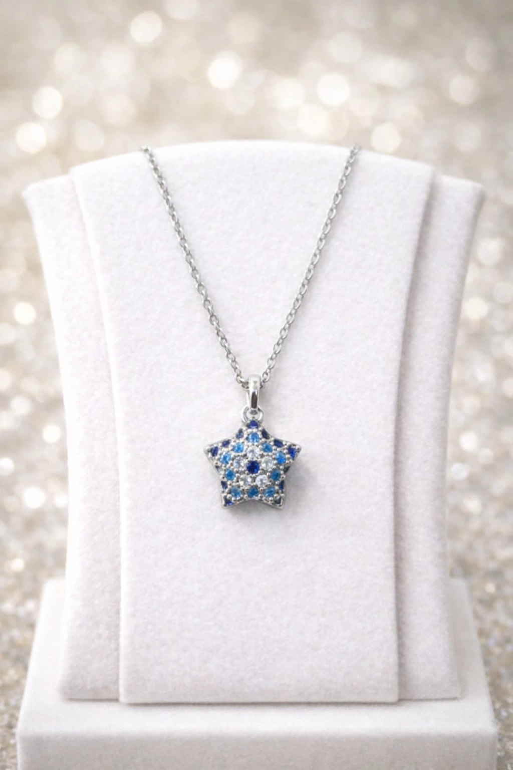 gümüş yıldız kolye, mavi taşlı kolye, çelik kolye kadın, yıldız kolye kadın, zirkon taş kolye, şık kolye, günlük kolye, Naaksesuar kolye