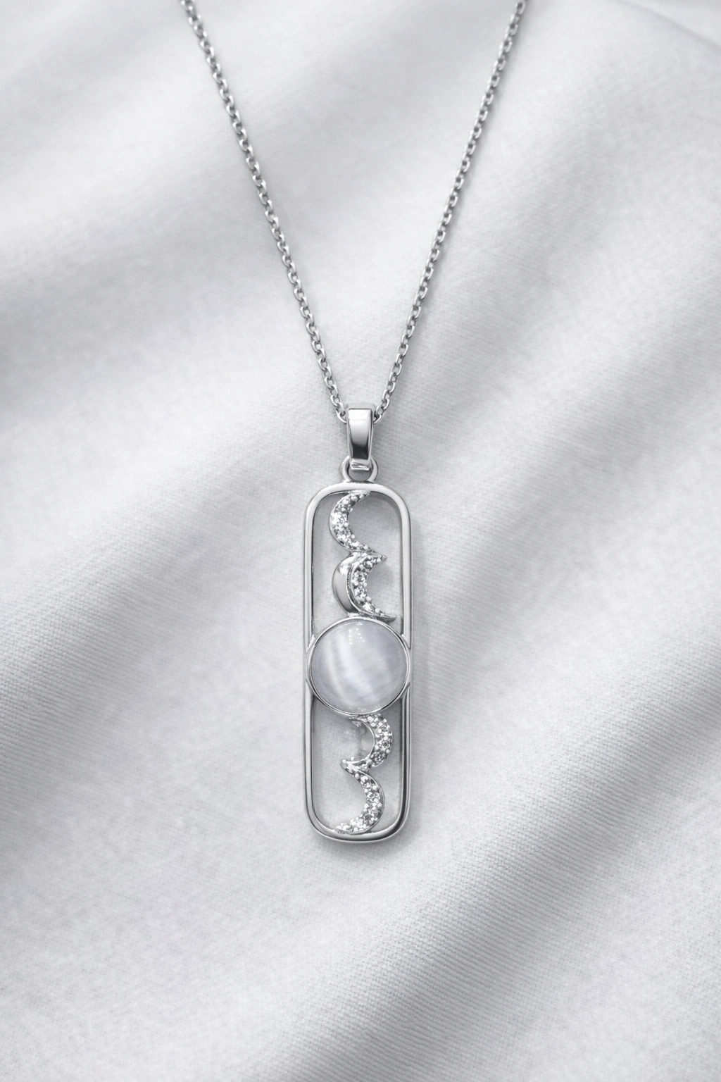 Modern tasarım ile doğal dengeyi bir araya getiren gümüş renkli çelik su terazi kolyesi, stiline anlam ve şıklık katmak isteyenler için özel olarak tasarlandı. Ortasında yer alan gri tonlu taş detayı ve zarif ay formundaki taş süslemeleri, kolyeye sofistike ve dengeli bir görünüm kazandırır.