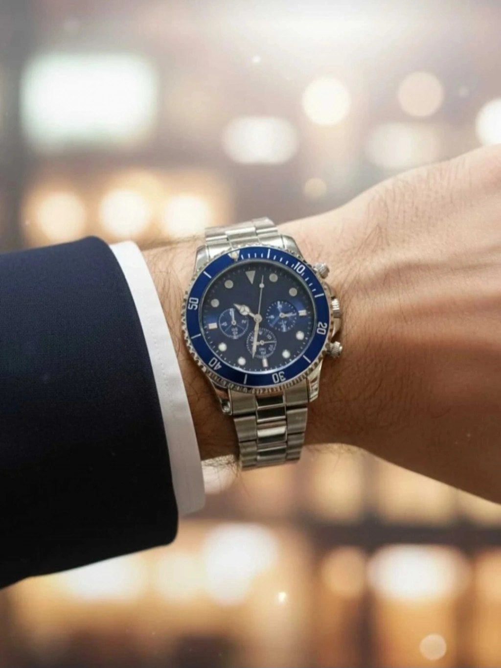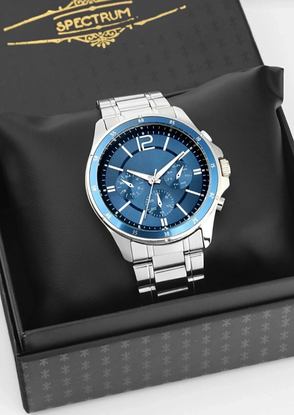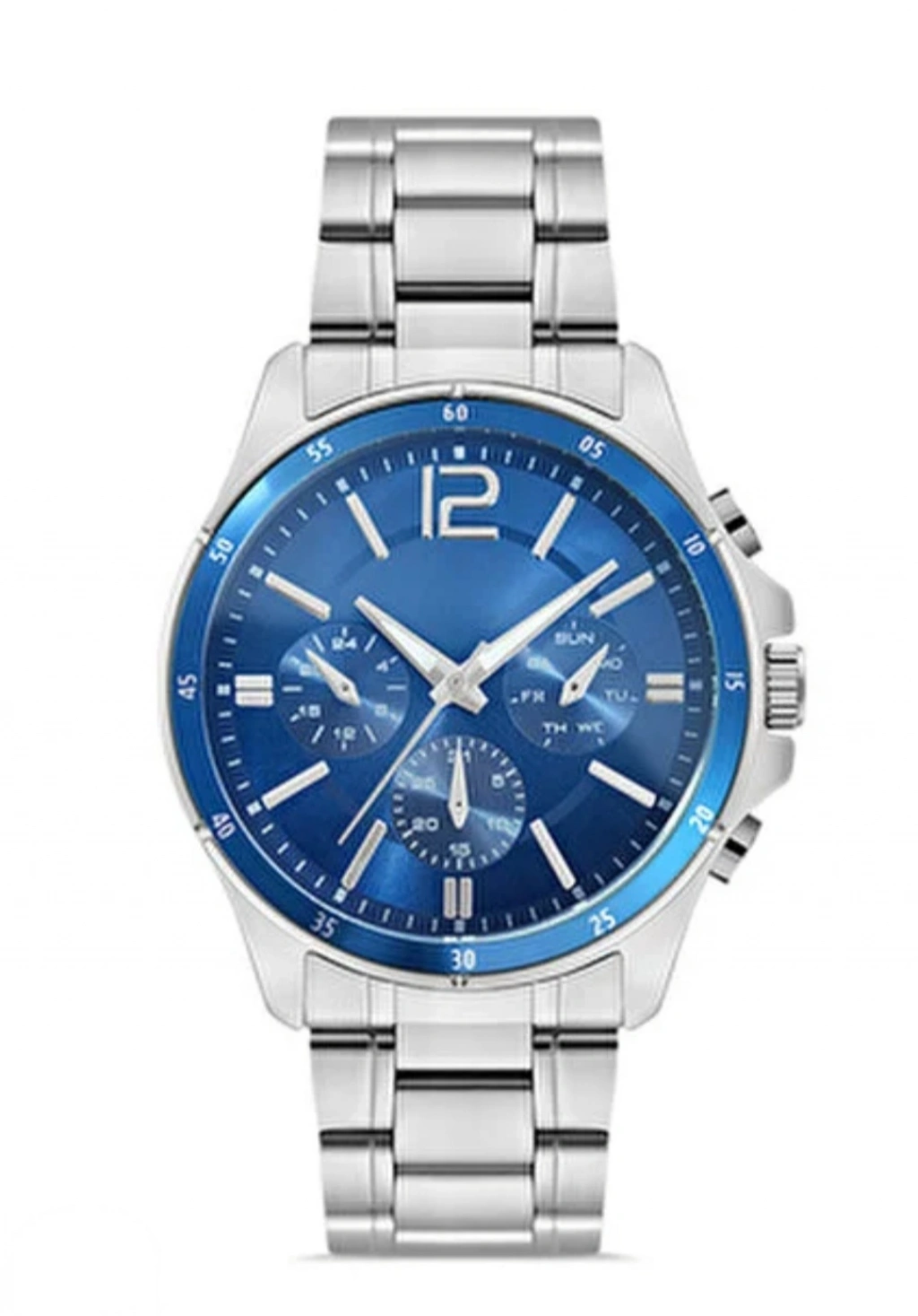 Gümüş renkli paslanmaz çelik kasa ve kordonu ile modern bir görünüme sahip erkek kol saati, şık mavi kadranı ile tarzınızı tamamlar. Çizilmeye dayanıklı mineral cam, net okunabilir göstergeler ve kronograf detaylarıyla hem günlük kullanım hem de özel günler için ideal bir tasarım sunar. Takvim göstergesi ve fonksiyonel alt kadranları sayesinde pratik kullanım sağlar. Dayanıklı metal kordonu bileğe tam uyum sağlar ve uzun ömürlü kullanım sunar. Minimal ama dikkat çekici tasarımıyla klasik ve spor şıklığı bir arada sunan bu erkek saat, hediye seçeneği olarak da mükemmel bir tercihtir.