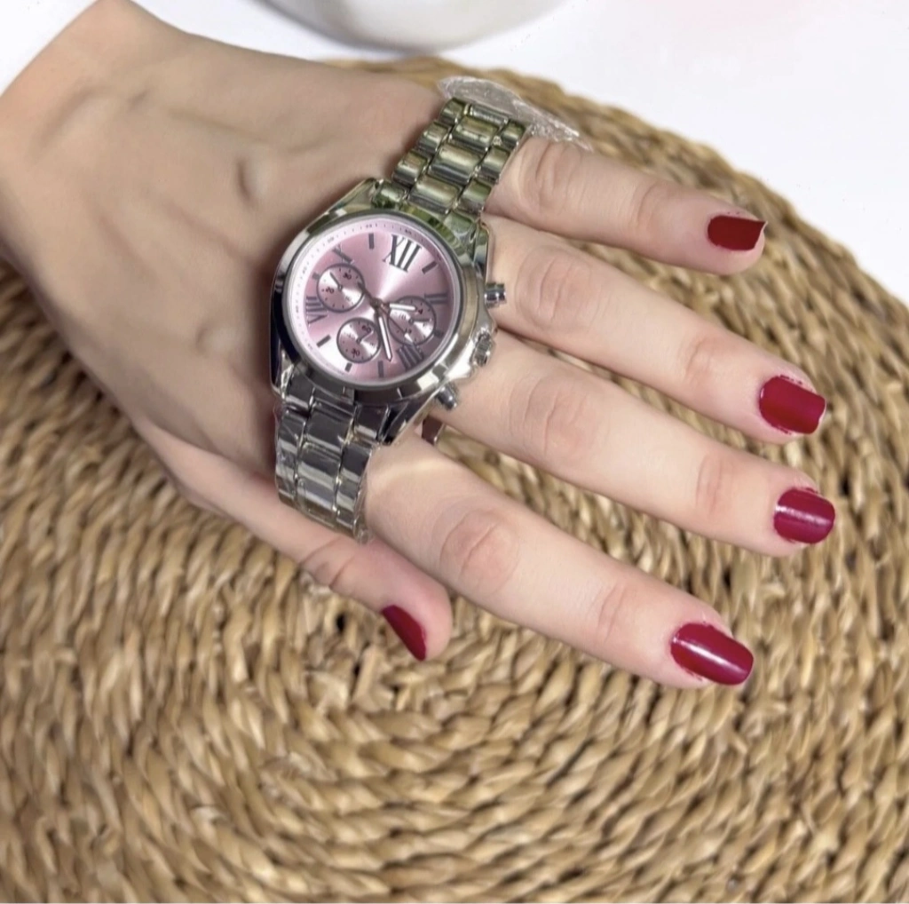Gümüş Renkli Pembe Kadran Lüks Kadın Saat – Zarif ve Modern Tasarım