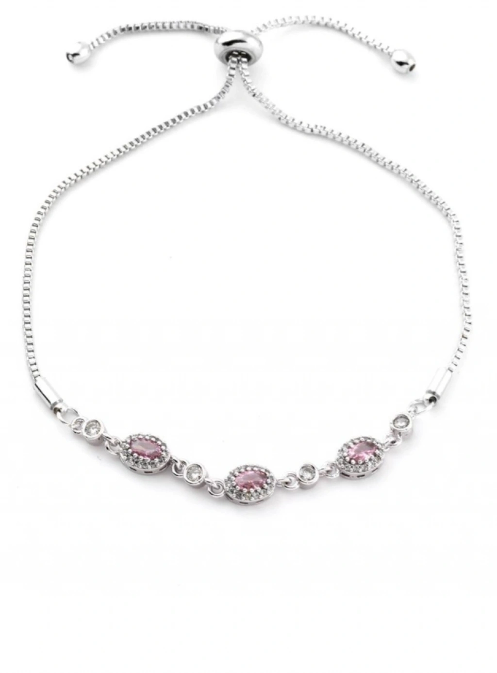 Gümüş Renkli Pembe Taşlı Oval Asansör Model Bileklik