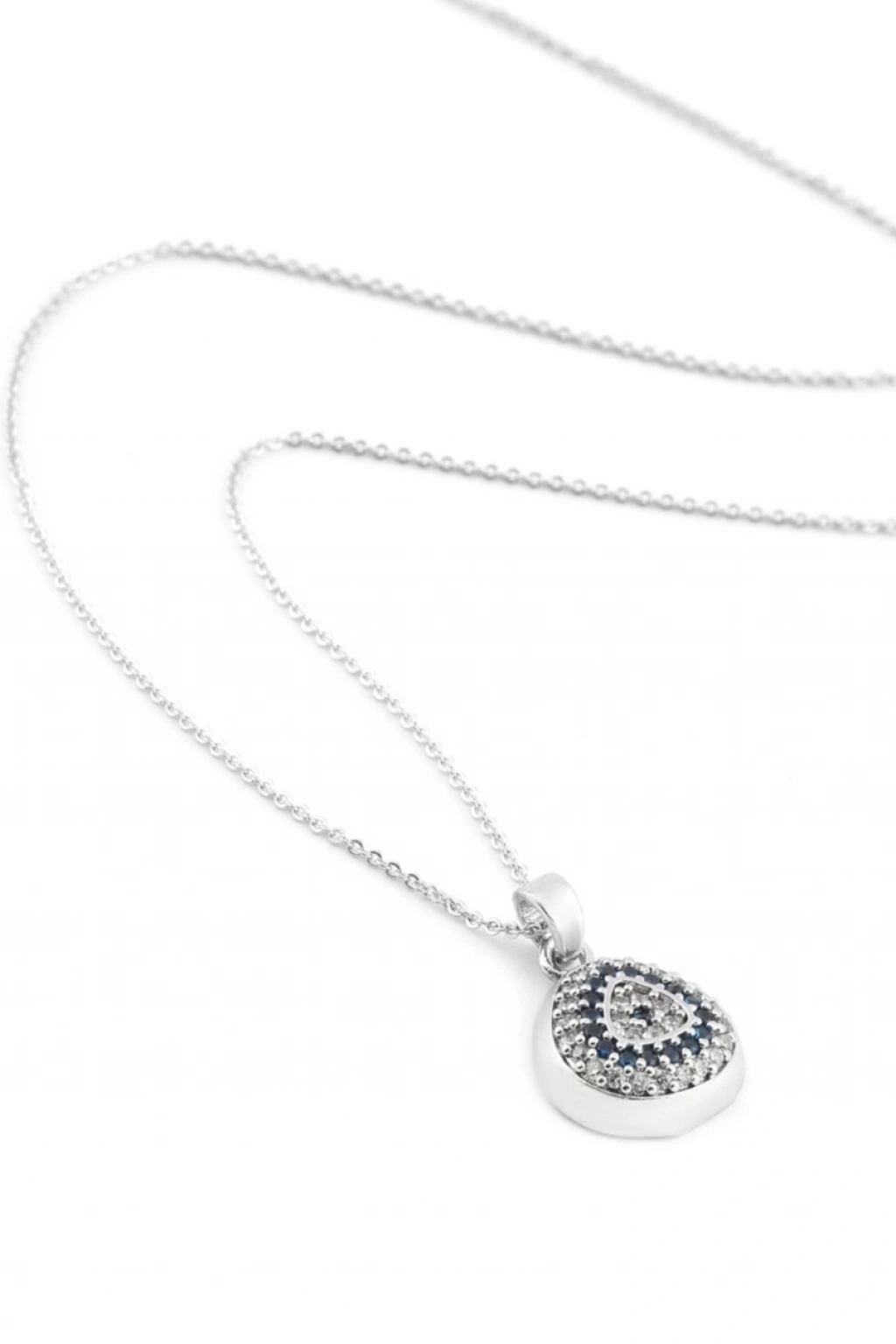 Gümüş Renkli Üçgen Model Nazar Boncuğu Çelik Kolye