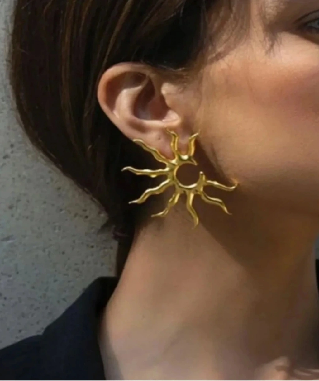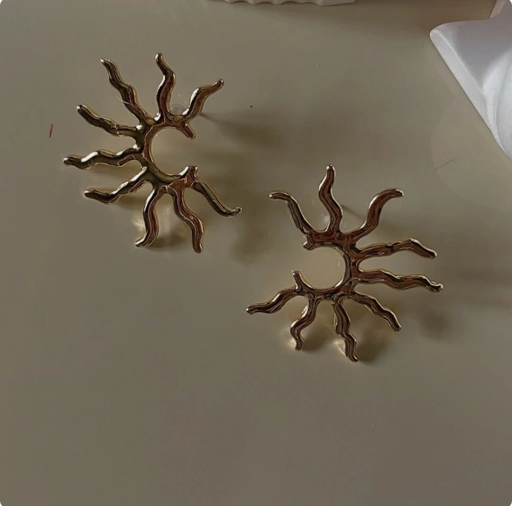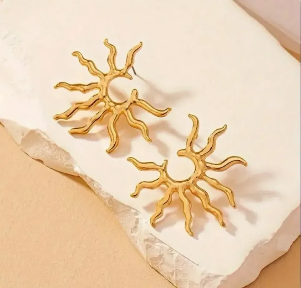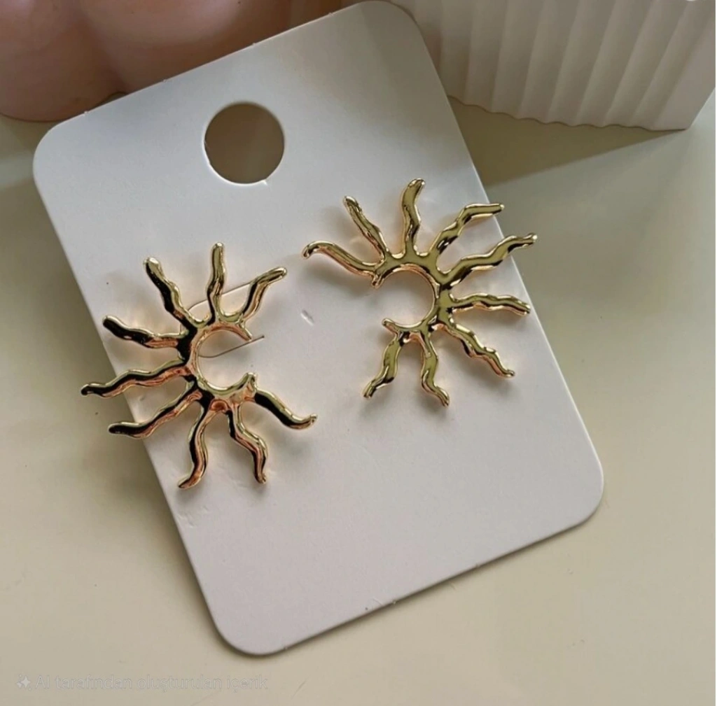 Anahtar kelimeler (SEO): gold küpe, güneş detay küpe, vip kaplama takı, gold renkli küpe, kadın küpe modelleri, ışıltılı küpe, zarif takı, Naaksesuar küpe.