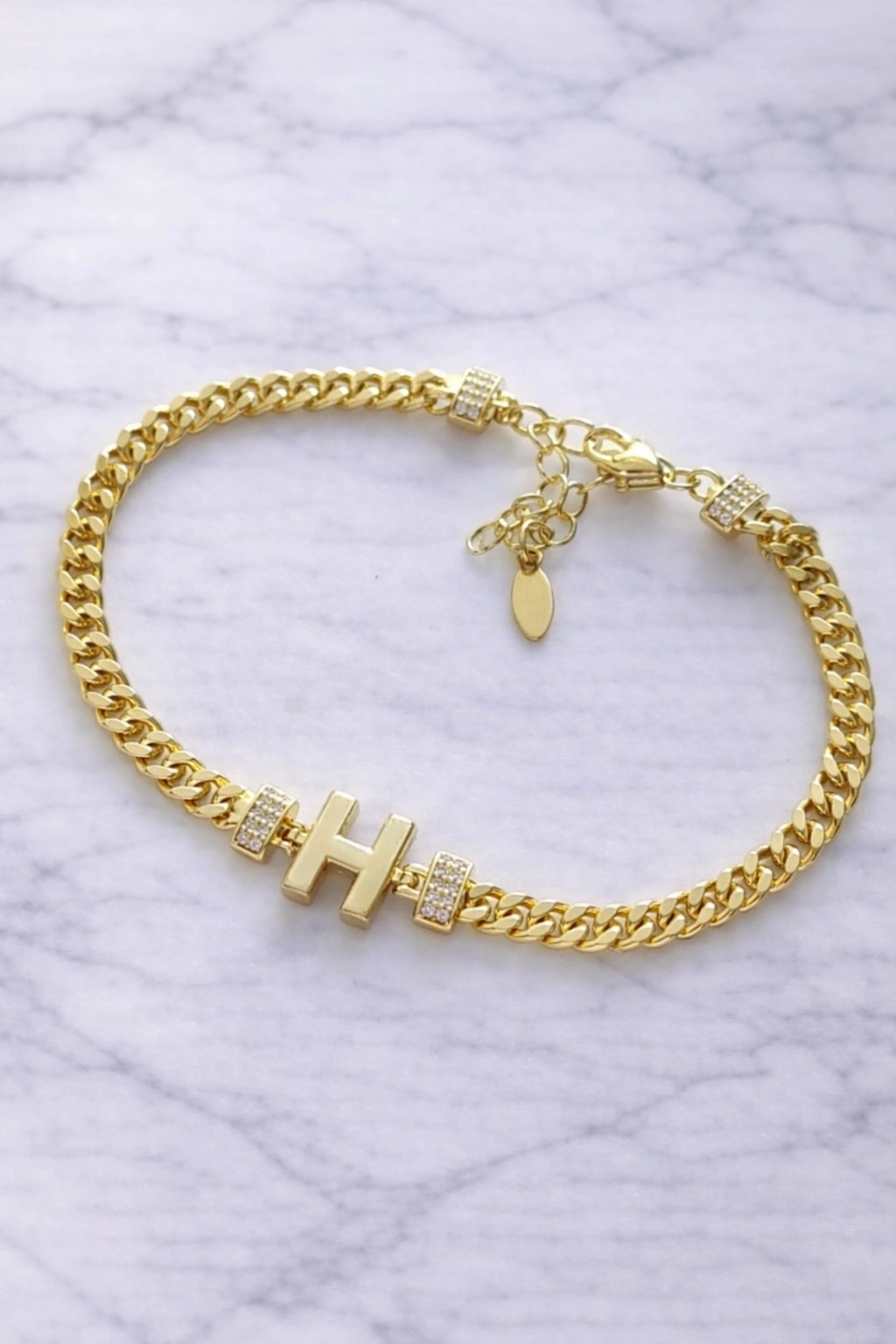 H Harfli Zincir Bileklik – 14K Altın Kaplama, Taş Detaylı Şık Tasarım