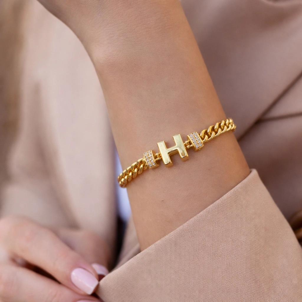 Şıklığın ve zarafetin en özel halini yansıtan H harfli zincir bileklik, modern tasarımı ve göz alıcı detaylarıyla stilinizi tamamlıyor. Günlük kombinlerden özel davetlere kadar her ortamda rahatlıkla kullanabileceğiniz bu bileklik, minimal ve anlamlı takıları sevenler için ideal bir seçimdir.