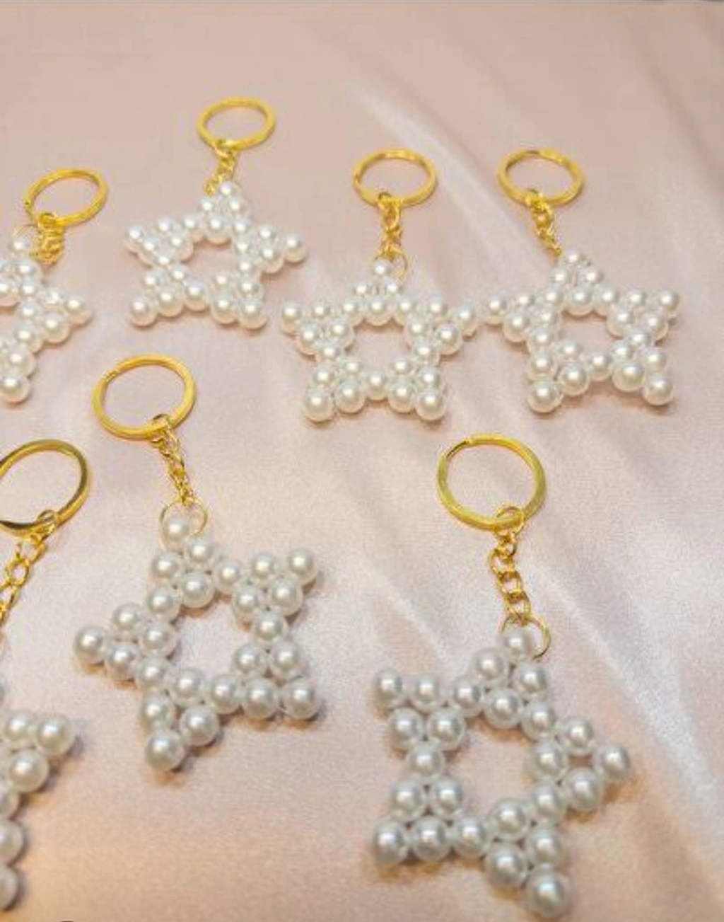 Misafirlerinize unutulmaz bir hatıra bırakmak ve özel günlerinize zarif bir dokunuş katmak için incili yıldız anahtarlık seti harika bir seçimdir.