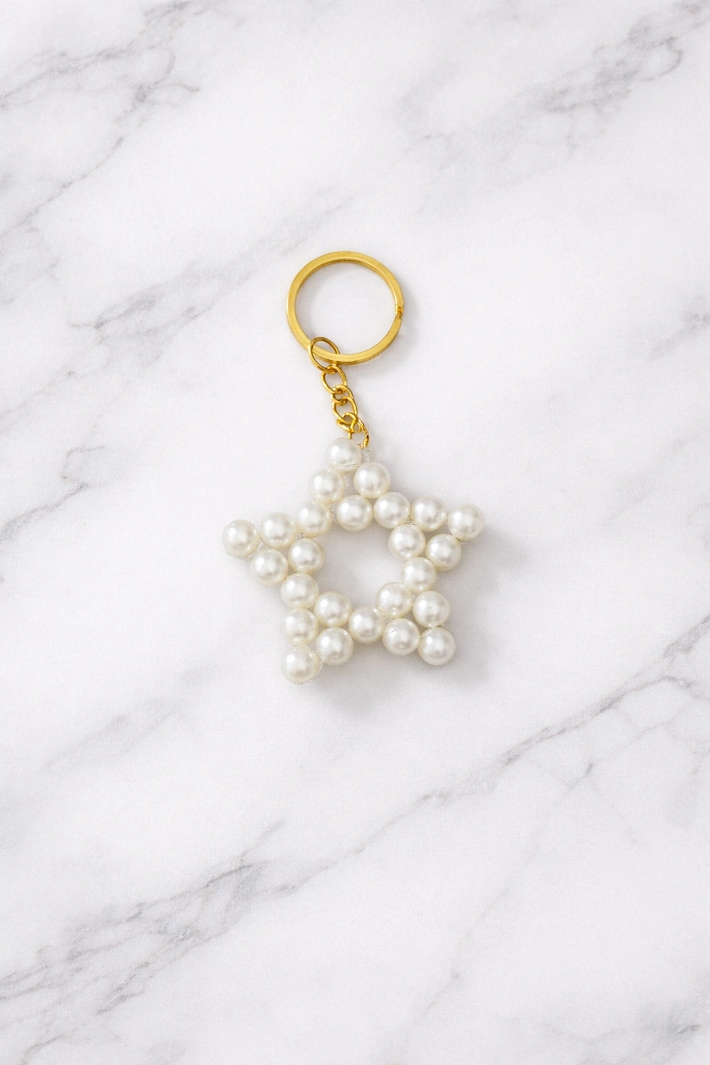 Şık ve zarif tasarımıyla öne çıkan incili yıldız anahtarlık, özel günleriniz için anlamlı ve estetik bir hediyelik seçeneğidir. Parlak inci detayları ve gold renk anahtarlık halkası ile hem kullanışlı hem de dekoratif bir aksesuardır.
