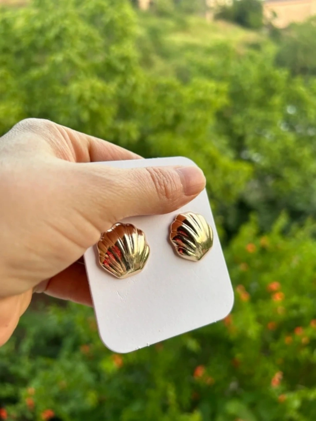Deniz esintisini modern şıklıkla buluşturan bu gold renkli istiridye model küpe, kulakta güçlü, zarif ve dikkat çekici bir duruş sergileyen VIP seri özel tasarımlardan biridir. Parlak altın görünümü ve kabuk yüzeyindeki detaylı işçiliği ile her kombine lüks bir dokunuş katar.