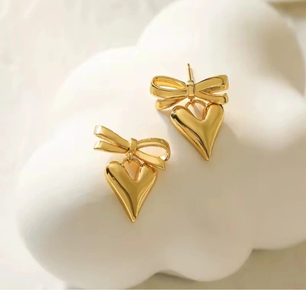 Zarafet ve romantizmi bir araya getiren kalp ve fiyonk detaylı gold renkli küpe, modern tasarımıyla dikkat çekiyor. Rodyum kaplama yüzeyi sayesinde uzun ömürlü parlaklığını korur, kararma yapmaz ve alerji riskini en aza indirir.