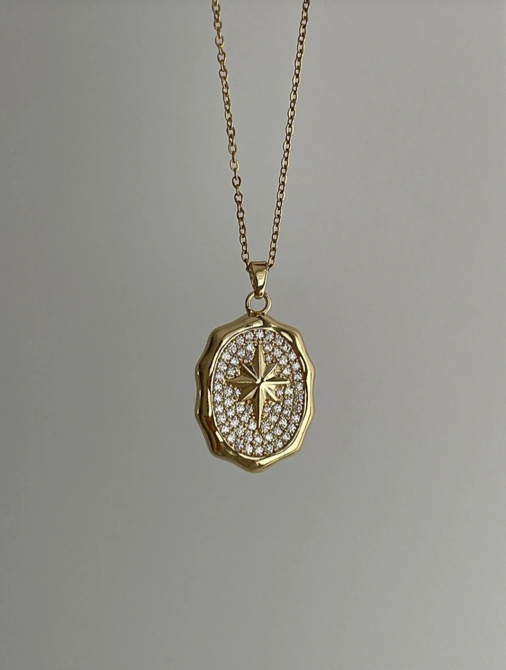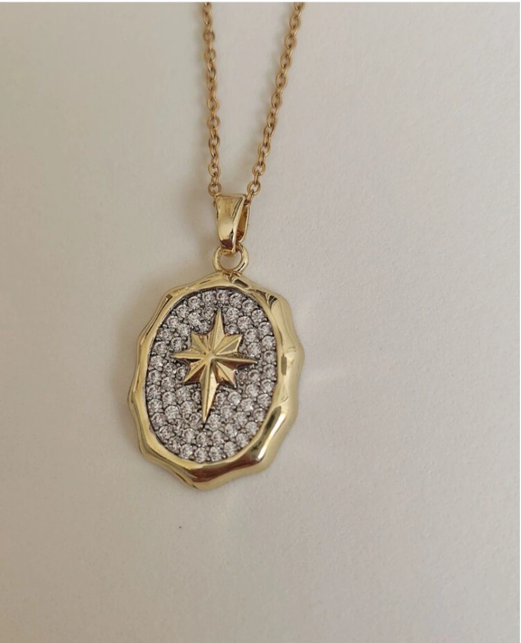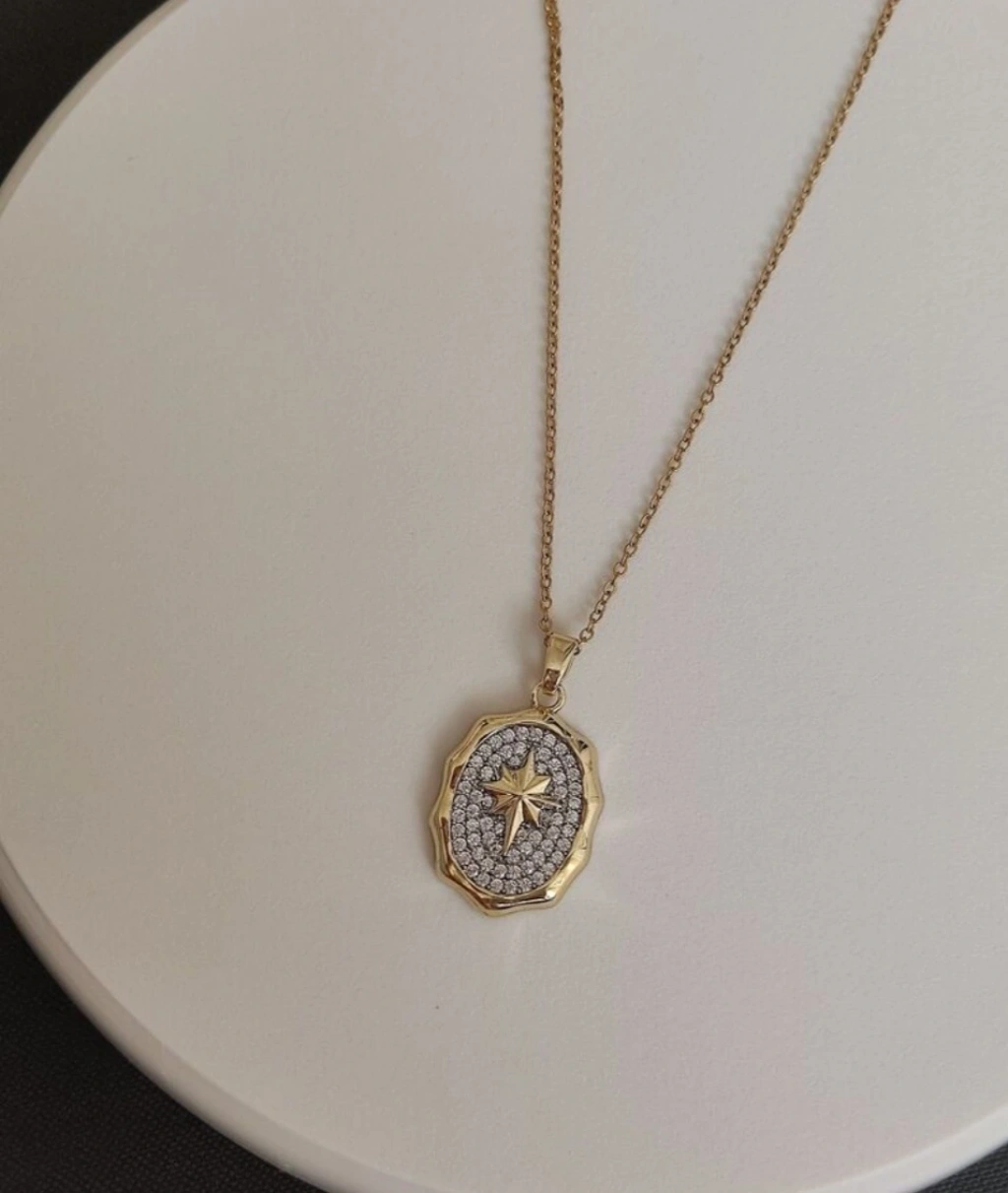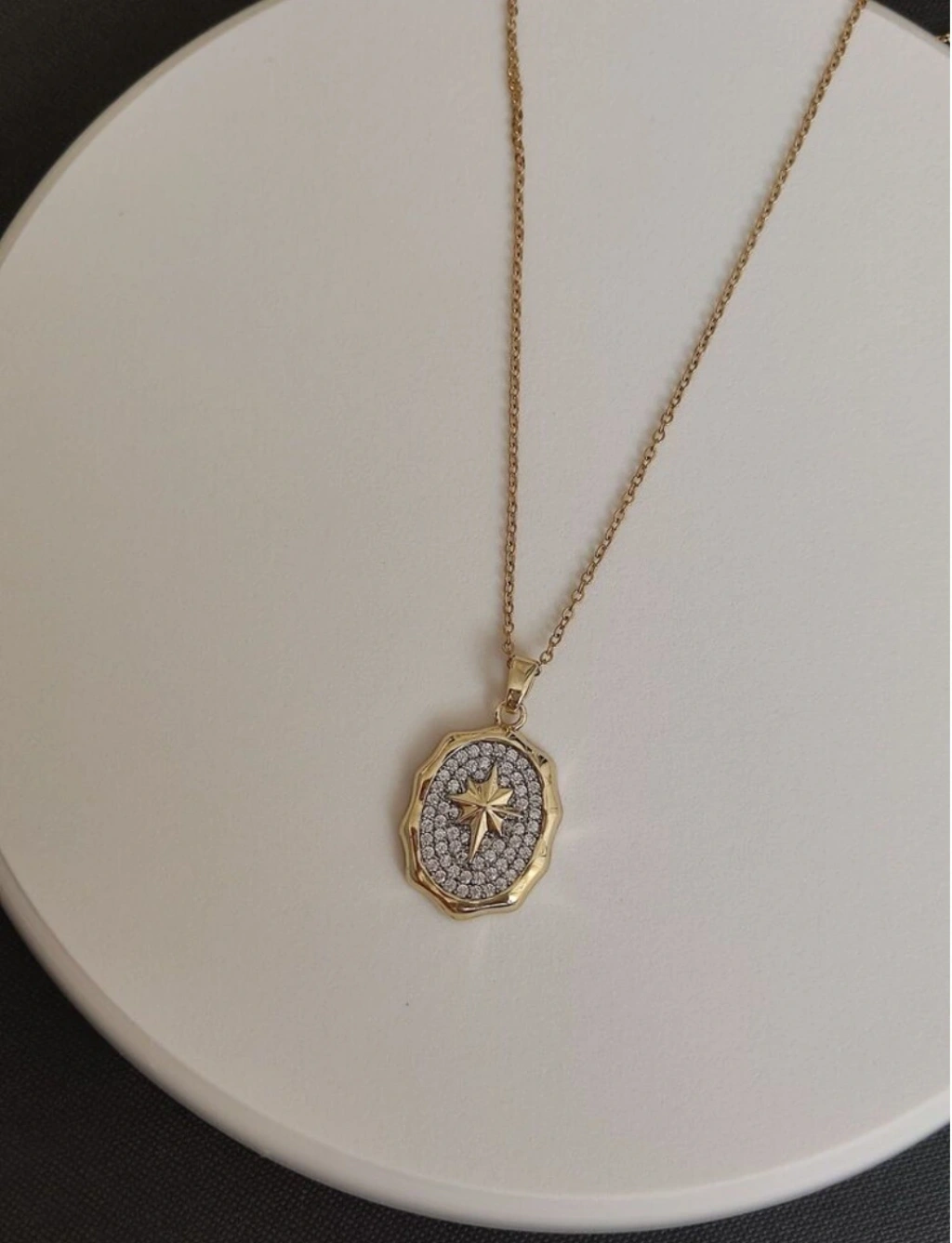 ✨ Kutup Yıldızı Çelik Kolye – Gold Renkli Taşlı ✨