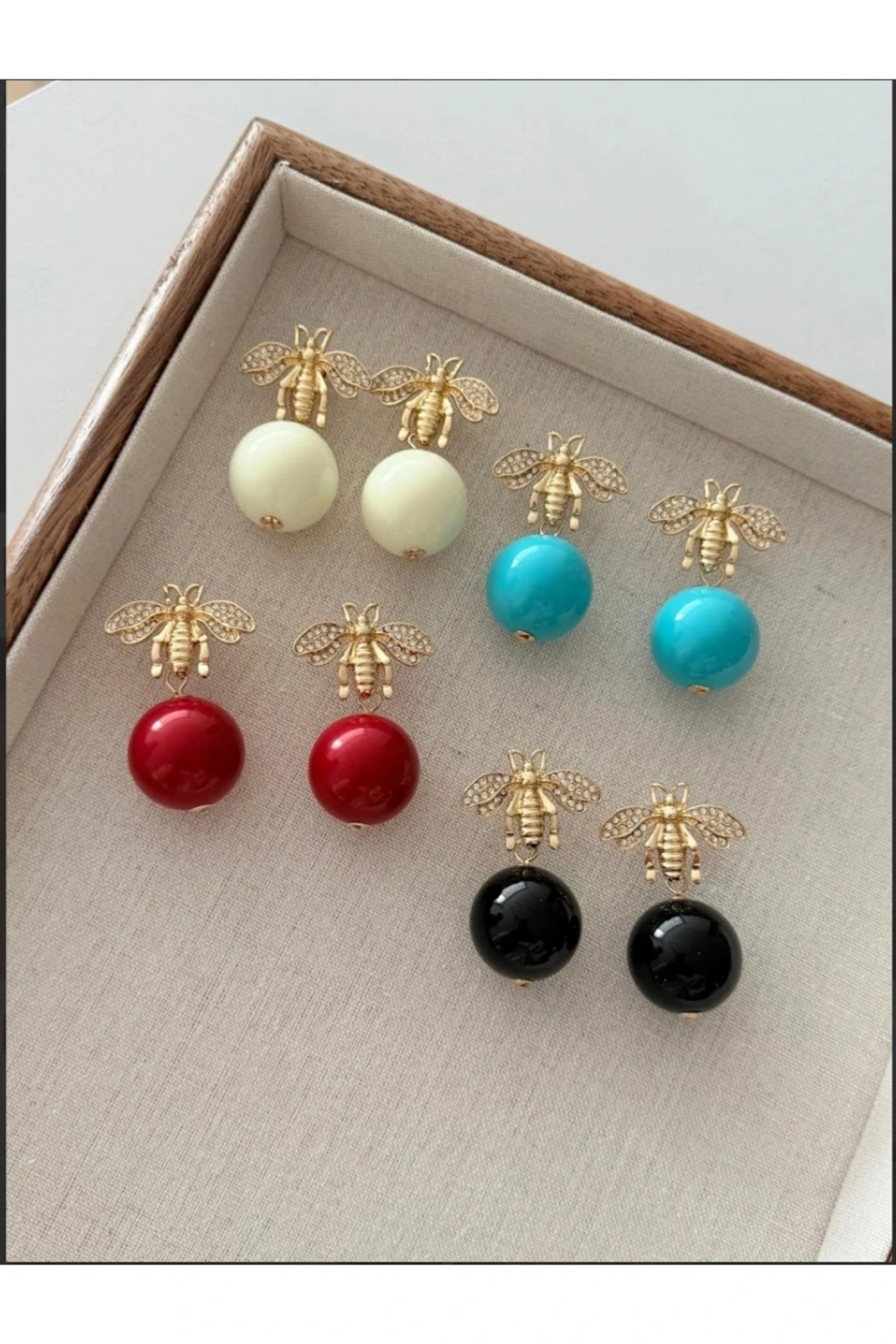 Arı figürlü tasarımıyla dikkat çeken bu özel marka model küpeler, zarafeti ve şıklığı bir arada sunuyor.; Üst kısmında ışıltılı taşlarla süslenmiş altın renkli arı motifi, alt kısmında ise farklı renk seçenekleriyle sunulan parlak detaylarıyla göz kamaştırıyor.; Krem, kırmızı, turkuaz ve siyah gibi iddialı renk alternatifleri sayesinde her stile kolaylıkla uyum sağlar.; Hafif yapısıyla gün boyu konforlu kullanım sunarken, şık tasarımıyla hem günlük kombinlere hem de özel davetlere zarif bir dokunuş katar.; Antialerjik ve paslanmaz materyalden üretilmiştir.; CEO uyumlu, modern ve sofistike bir görünüm arayanlar için ideal bir aksesuardır.