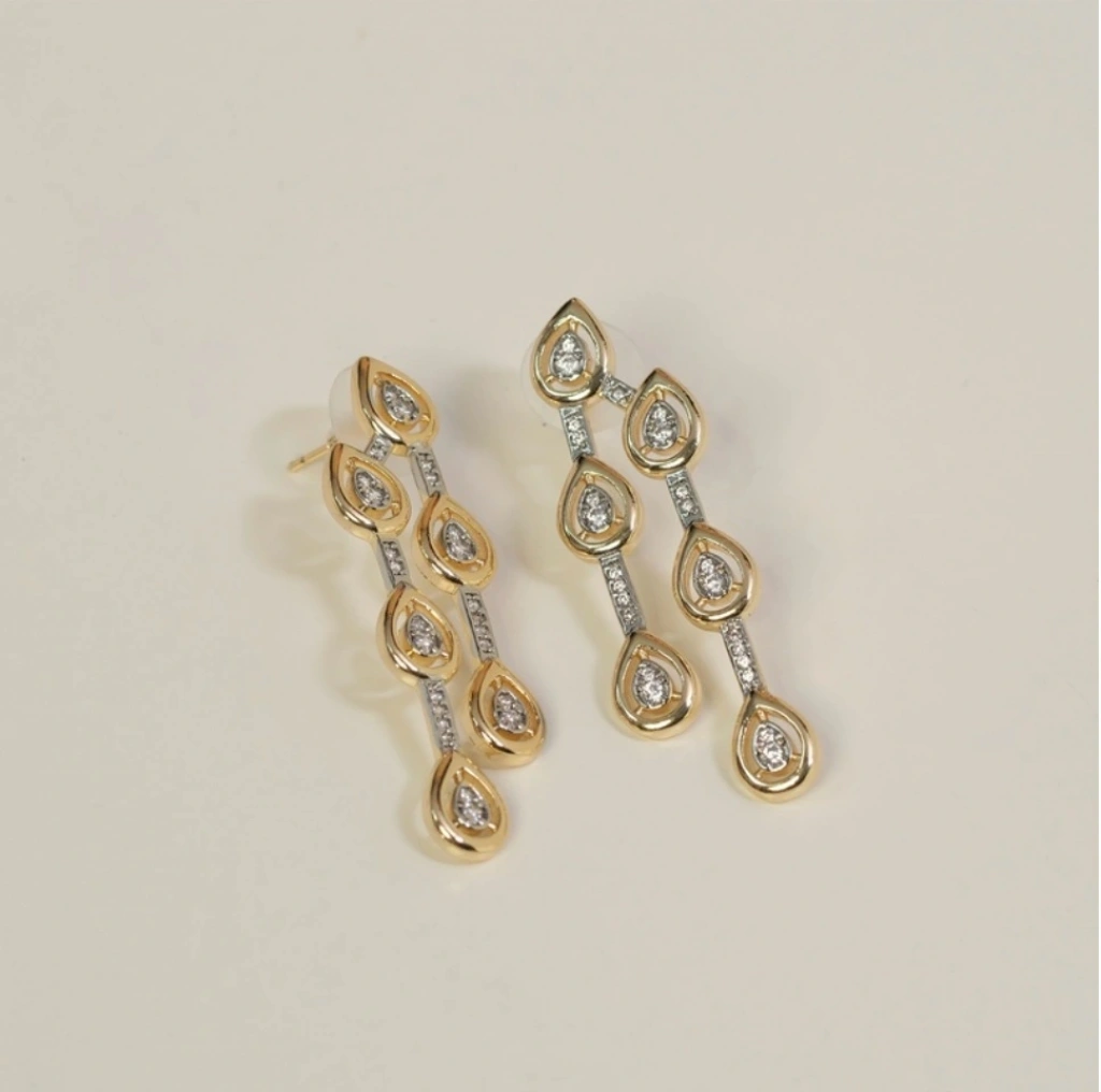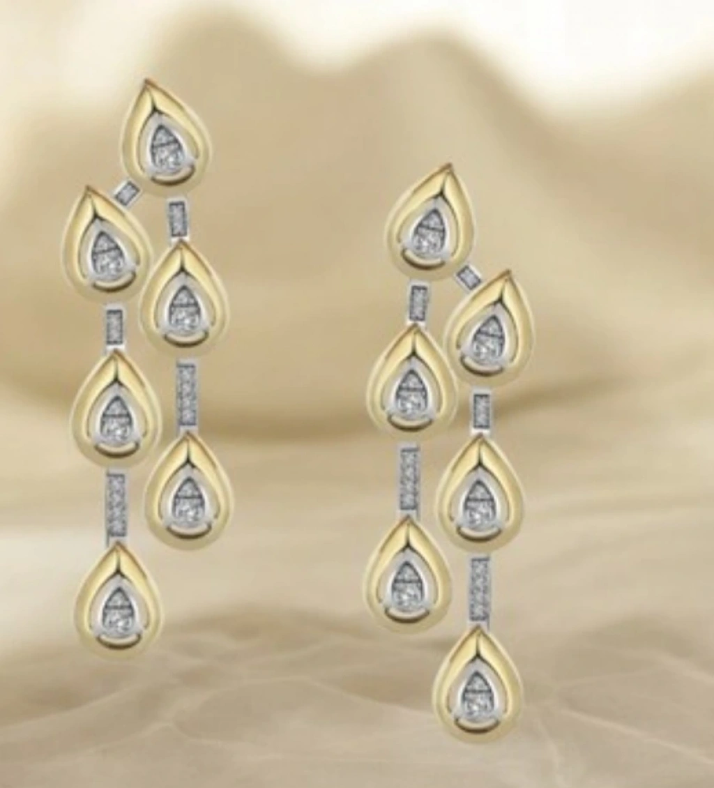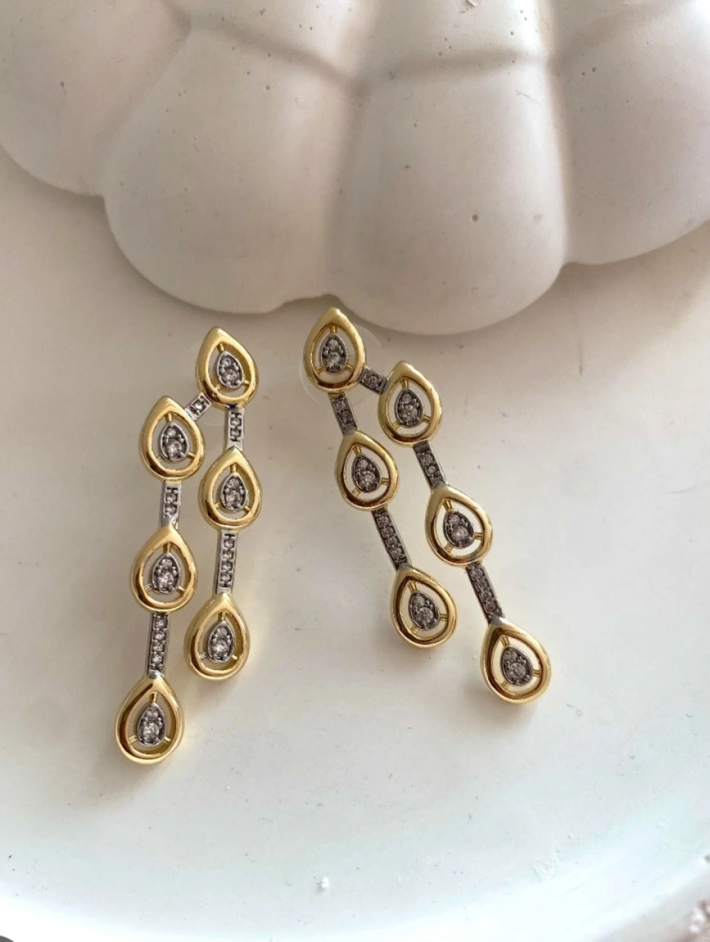 Şıklığı, zarafeti ve modern çizgiyi bir araya getiren Marka Model İkili Çelik Gold Sallantılı Küpe, özel tasarım damla formu ve taş detaylarıyla dikkat çeken lüks bir parçadır. Gold çerçeveli damla motifleri ve aralarındaki ince taşlı bağlantılar, küpeye hem hareket hem de ışıltı kazandırır.