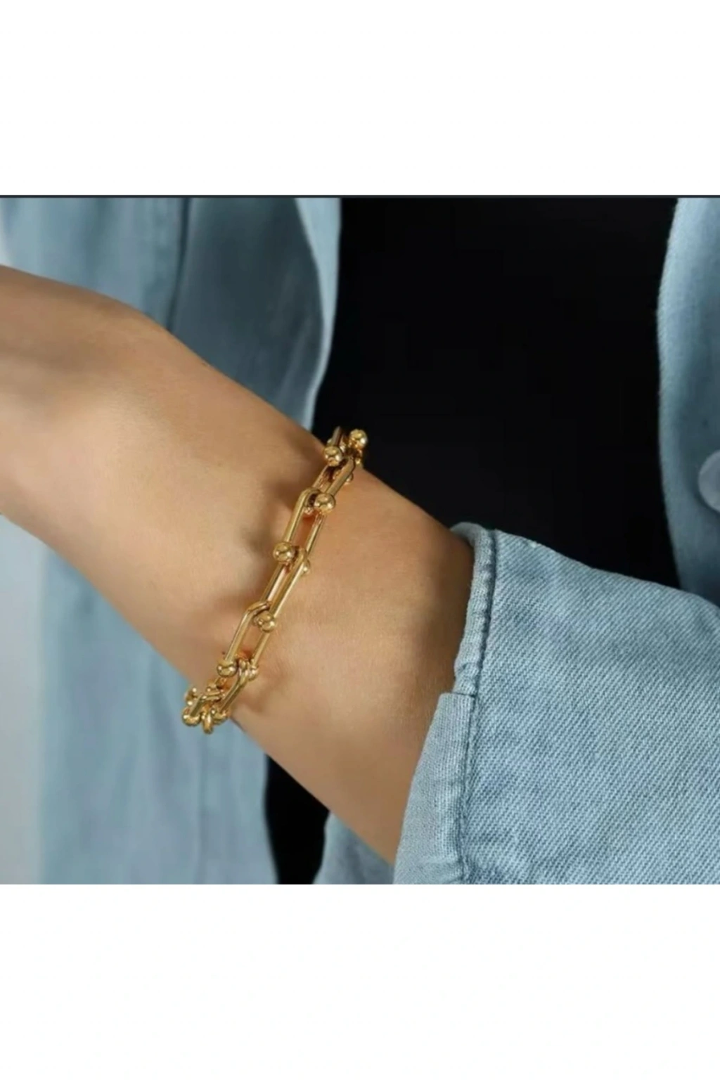 Tfny Marka Model Çelik Bileklik Modern ve sofistike tasarımıyla öne çıkan Tfny marka model çelik bileklik, stilinize özgün ve iddialı bir dokunuş katıyor.; Parlak çelik halkaların minimal top detaylarıyla birleştiği bu özel model, hem günlük kombinlerinizde hem de özel davetlerde kullanabileceğiniz zamansız bir aksesuardır.; 316L paslanmaz çelik malzemeden üretilmiş olup, suya ve kimyasallara karşı dayanıklıdır.; Parlak yüzeyi uzun süre ilk günkü ışıltısını korurken, antialerjik yapısıyla her cilt tipi için uygundur.; Ayarlanabilir zinciri sayesinde bileğinize rahatça uyum sağlar.; ✅ Modern zincir formu ✅ Parlak çelik top detayları ✅ 316L paslanmaz çelik materyal ✅ Suya ve kimyasallara dayanıklı ✅ Antialerjik ve uzun ömürlü Zarif ve güçlü duruşuyla Naaksesuar koleksiyonunuzun en seçkin parçalarından biri olmaya aday!