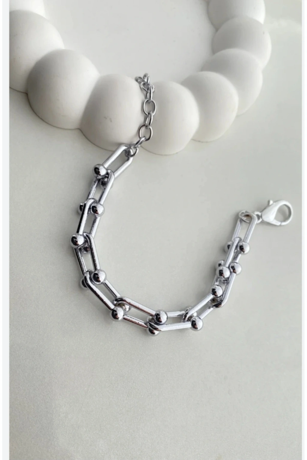 Tfny Marka Model Çelik Bileklik Modern ve sofistike tasarımıyla öne çıkan Tfny marka model çelik bileklik, stilinize özgün ve iddialı bir dokunuş katıyor.; Parlak çelik halkaların minimal top detaylarıyla birleştiği bu özel model, hem günlük kombinlerinizde hem de özel davetlerde kullanabileceğiniz zamansız bir aksesuardır.; 316L paslanmaz çelik malzemeden üretilmiş olup, suya ve kimyasallara karşı dayanıklıdır.; Parlak yüzeyi uzun süre ilk günkü ışıltısını korurken, antialerjik yapısıyla her cilt tipi için uygundur.; Ayarlanabilir zinciri sayesinde bileğinize rahatça uyum sağlar.; ✅ Modern zincir formu ✅ Parlak çelik top detayları ✅ 316L paslanmaz çelik materyal ✅ Suya ve kimyasallara dayanıklı ✅ Antialerjik ve uzun ömürlü Zarif ve güçlü duruşuyla Naaksesuar koleksiyonunuzun en seçkin parçalarından biri olmaya aday!