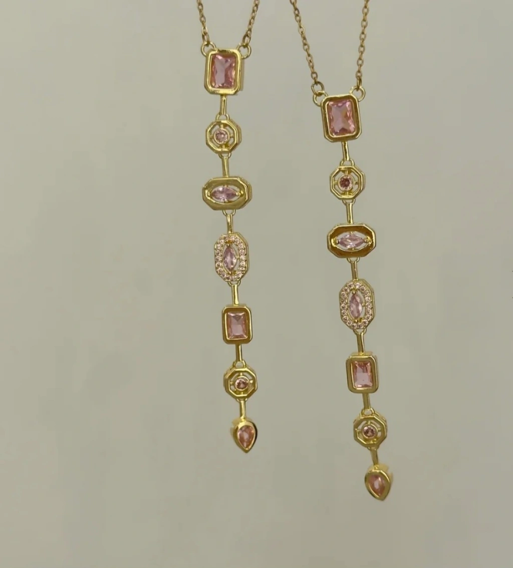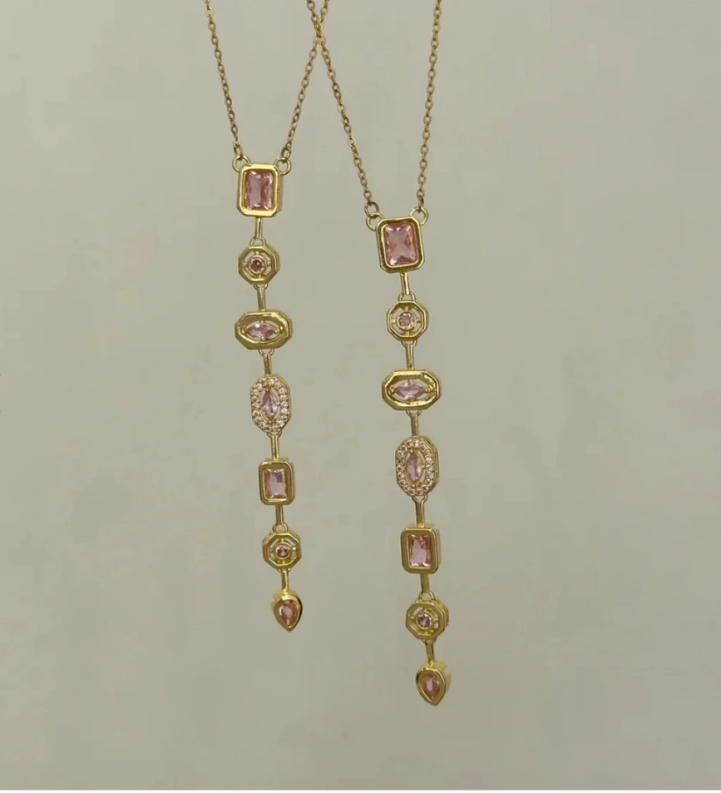 ✅ Detay: Pudra pembe taşlarla bezeli 7 element, zarif zincir uyumu.