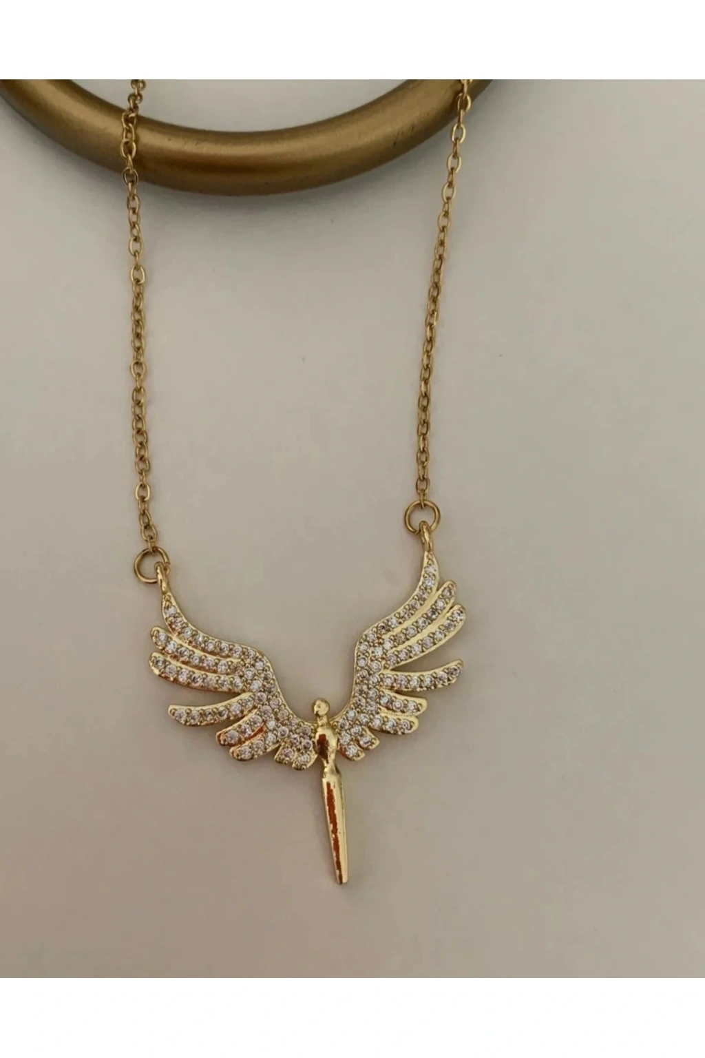 Mikail Meleği Figürlü Taşlı Gold Renk Çelik Kolye Özel tasarımıyla dikkat çeken Mikail meleği figürlü kolye, anlamlı ve zarif detayları bir araya getiriyor.; Gold renk 316L paslanmaz çelik materyali ile üretilen bu kolye, uzun ömürlü kullanımı ve parlak yapısıyla her kombine uyum sağlıyor.; Gold taş detayları, kolyeye ışıltılı ve modern bir hava katarken; meleğin koruyucu enerjisini simgeleyen figür tasarımı ile hem şık hem anlamlı bir aksesuar sunuyor.; Su ve kimyasallara dayanıklı yapısı sayesinde günlük kullanıma uygundur.; Antialerjik özelliğiyle hassas ciltlerde de rahatlıkla tercih edilebilir.; Özel günlerde sevdiklerinize hediye edebileceğiniz, kombinlerinize anlam katacak bu eşsiz parça, stilinize zarafet katacak.; Ürün Özellikleri: 316L Çelik malzeme Gold renk kaplama Mikail meleği figür detayı Gold taşlı özel tasarım Suya ve kimyasala dayanıklı Antialerjik Naaksesuar güvencesiyle hemen koleksiyonunuza ekleyin!