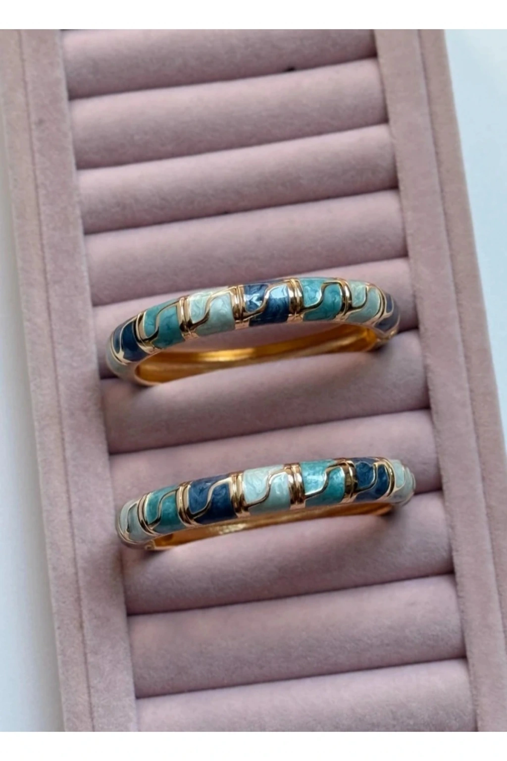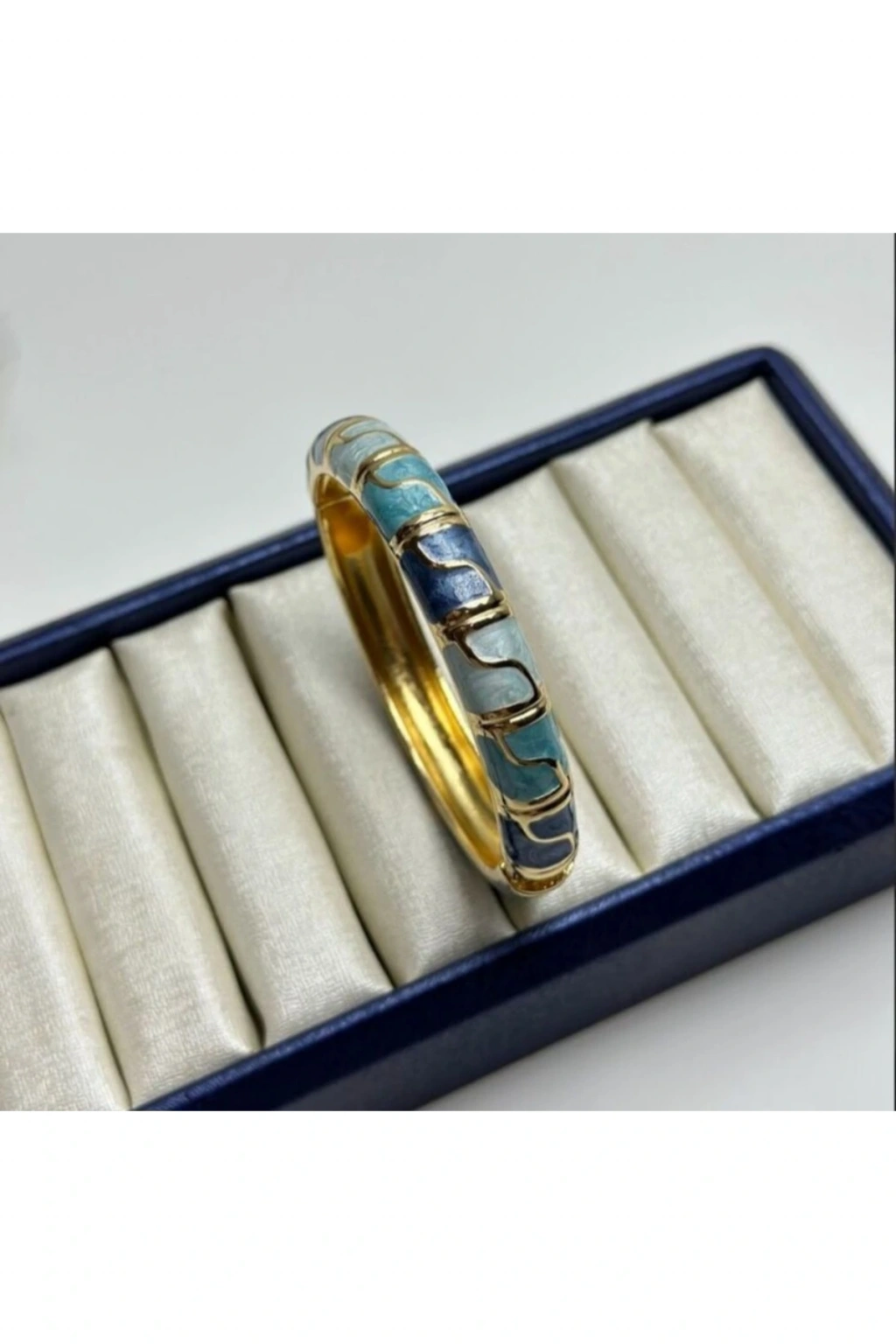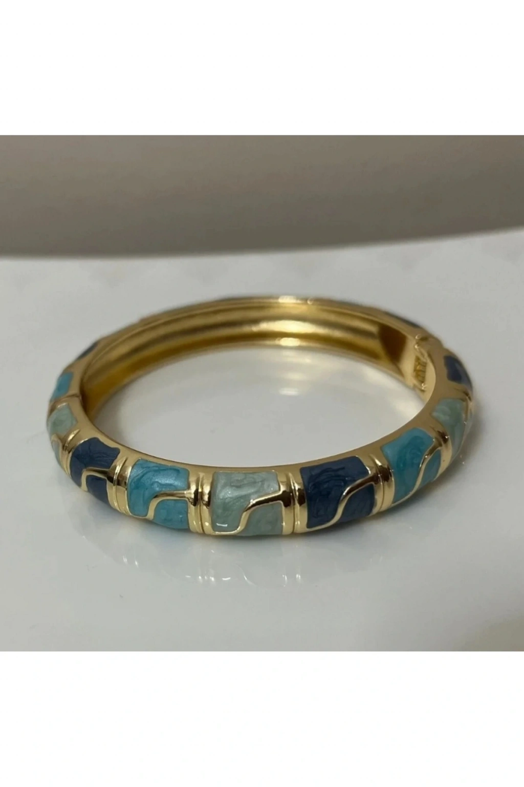 Mineli Dalgalı Desenli Mavi KelepçeŞıklığı ve zarafeti bir arada sunan mineli dalgalı desenli mavi kelepçe, modern tasarımı ve zarif detaylarıyla tarzınıza ayrıcalıklı bir dokunuş katıyor.; Altın tonlu gövde üzerine işlenen mavi ve lacivert mine kaplamalar, denizin dalga hareketlerinden ilham alınarak tasarlanmıştır.; Bu özel desen, bileziğe hareketli ve sofistike bir görünüm kazandırırken, her kombine kolayca uyum sağlar.; Dayanıklı ve kaliteli işçiliği sayesinde uzun ömürlü kullanım sunar.; Kararma yapmayan yapısı, antialerjik özellikleriyle de ön plana çıkan bu kelepçe, günlük kullanımdan özel davetlere kadar her ortamda şıklığınızı tamamlayacak ideal bir aksesuardır.; Rahat kapanış sistemi sayesinde bileğe kolayca oturur ve gün boyu konfor sağlar.; Öne Çıkan Özellikler:Dalga desenli özel mine işçiliğiAltın detaylı modern tasarımKararma yapmaz, antialerjik yapıGünlük kullanım ve özel davetler için idealŞık kutusunda hediye seçeneğiMinimalist ama dikkat çekici tarzıyla CEO uyumlu,