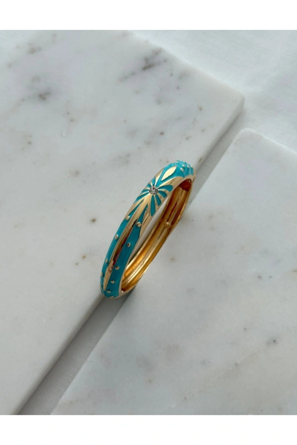 Mineli Mavi Ayışığı Yıldız Kelepçe BileklikGökyüzünün büyüleyici tonlarını bileğinize taşıyan Mineli Mavi Ayışığı Yıldız Kelepçe Bileklik, şık tasarımıyla zarafeti ve modernliği bir araya getiriyor.; Canlı mavi minesi, altın detaylarla birleşerek adeta gece göğünde parlayan bir yıldızı andırıyor.; Orta kısmındaki ışıltılı taş, bilekliğe sofistike bir parıltı katarken ayışığının gizemini yansıtıyor.; ✔ 316L paslanmaz çelik alt yapısı ile uzun ömürlü, sağlam ve antialerjik kullanım sağlar.; ✔ Kararma yapmaz, parfüm, deodorant ve su gibi dış etkenlere karşı yüksek dayanıklılığa sahiptir.; ✔ Günlük kullanımda zarafeti, özel davetlerde ise ışıltıyı ön plana çıkaran çok yönlü bir tasarımdır.; ✔ Sevdiklerinize hediye edebileceğiniz, anlamlı ve göz alıcı bir aksesuardır.; Naaksesuar VIP & Luxury Serisi içerisinde yer alan bu bileklik, minimalist şıklığı sevenler için özel olarak tasarlanmıştır.