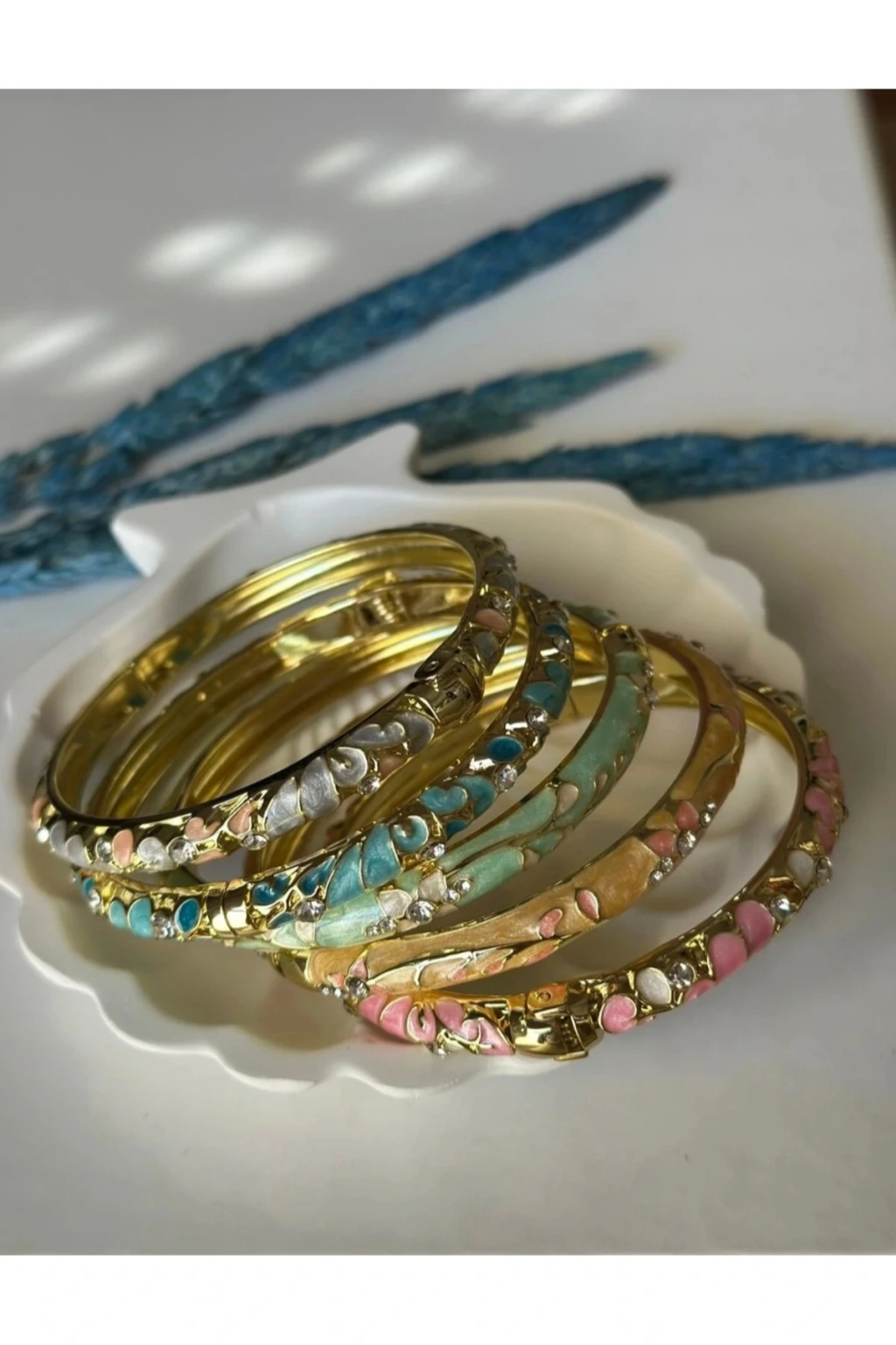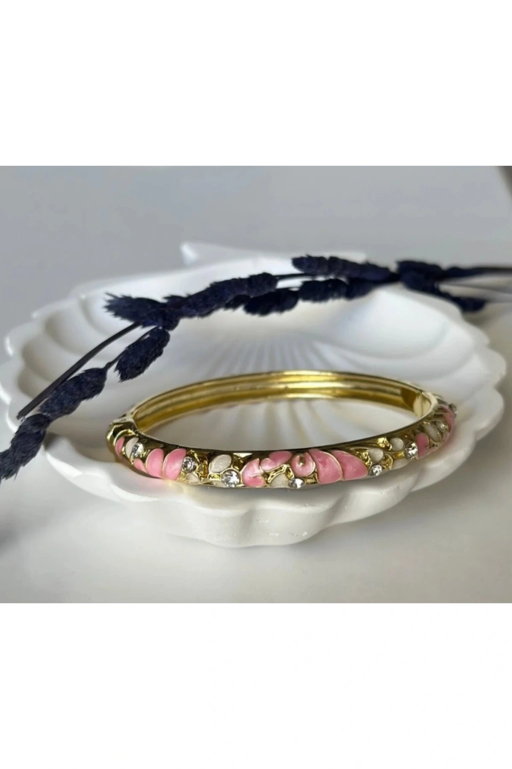 Mineli Taşlı Çiçek Detaylı Pembe Kelepçe BilezikZarafeti ve romantizmi bir arada sunan Mineli Taşlı Çiçek Detaylı Pembe Kelepçe Bilezik, şık tasarımıyla koleksiyonunuzun göz alıcı parçalarından biri olmaya adaydır.; Gold rengin sıcak ışıltısı üzerine işlenen pembe ve beyaz mine çiçek motifleri, parlak taşlarla süslenerek feminen bir ışıltı kazandırılmıştır.; Materyal: Özel alaşım, gold kaplamaDetay: Mine çiçek desenleri ve taş işlemeli tasarımRenk: Gold üzerine pembe ve beyaz mine dokunuşlarıKullanım Alanı: Günlük kombinler, özel davetler, özel gün hediyesiÖzellik: Kararma yapmaz, uzun ömürlü, zarif ve modern görünümNaaksesuar’ın seçkin koleksiyonunda yer alan bu model, hem romantik hem de şık havasıyla kombinlerinize değer katıyor.