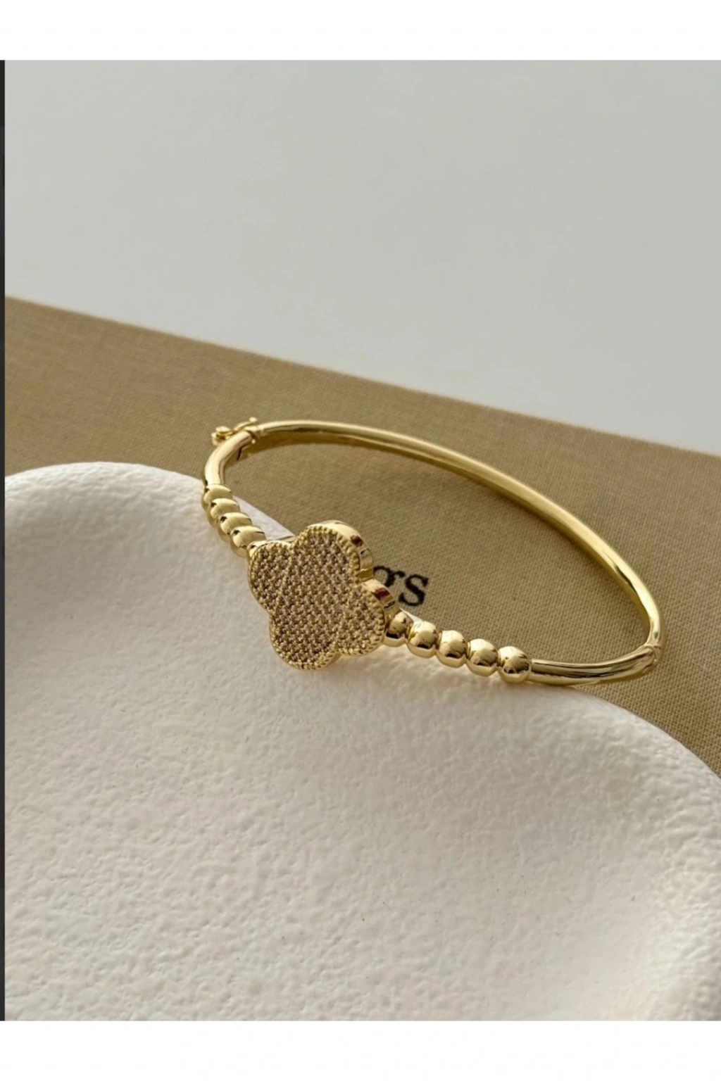 Özel Seri Altın Renkli Çiçek Formlu Kelepçe Bileklik